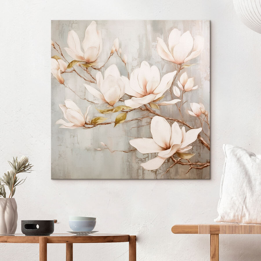 Fleur elke ruimte op met deze prachtige canvasprint van bloeiende bloemen. Stel je voor dat je een kamer binnenloopt die meteen warmer en uitnodigender aanvoelt, allemaal dankzij deze elegante bloemen. Ze zorgen ervoor dat alles sereen aanvoelt, als een frisse wind. De delicate kleuren steken af tegen de zachte, gedempte achtergrond en brengen een vleugje natuur binnenshuis.
