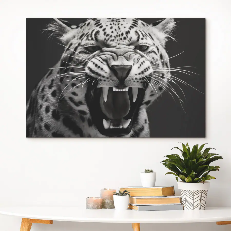 Geef je muren een woest tintje met deze opvallende canvasprint, “Fierce Expression of a Wild Animal”. Het is alsof je een klein stukje jungle in je woonkamer hebt! Deze wilde schoonheid buldert van persoonlijkheid, waardoor het een boeiend middelpunt is voor elke ruimte. Stel je voor dat je ‘s ochtends aan je koffie nipt terwijl je verdwaalt in die intense ogen-definitief een gespreksstarter!