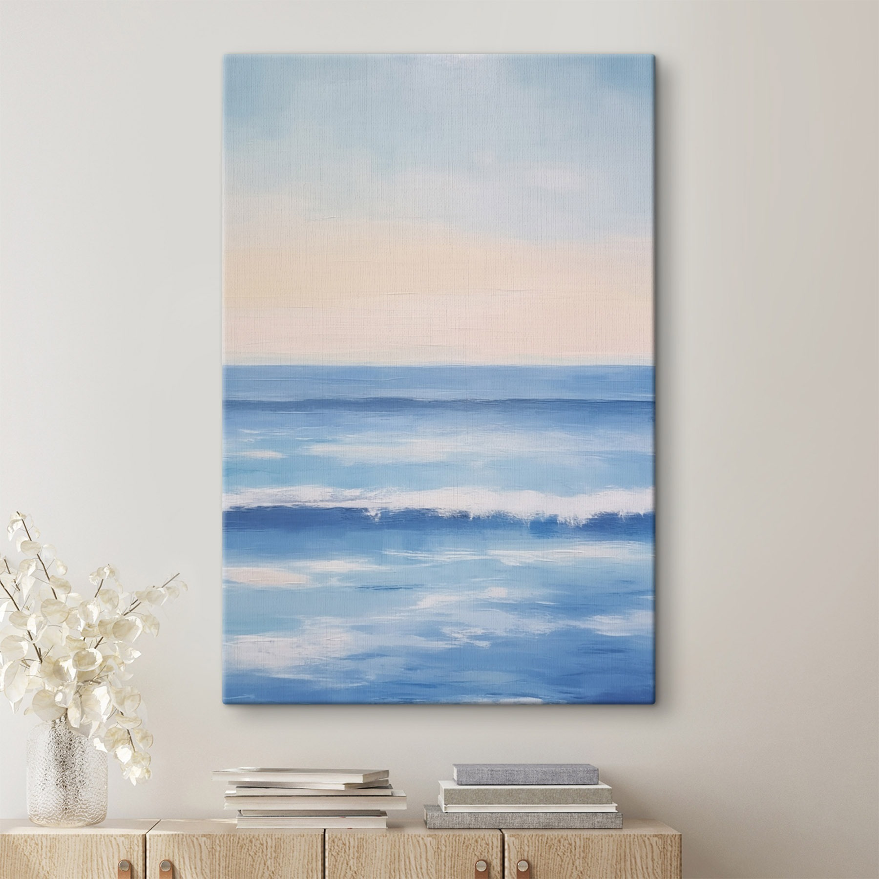 Duik in een serene ontsnapping met deze prachtige canvasprint van een waterlichaam. Het fluistert verhalen van kalme briesjes en zachte golven, waardoor elke ruimte aanvoelt als een kustplaatsje. Stel je voor dat je wegdroomt onder het genot van een kopje koffie, of dat je die saaie muur omtovert in een ontspannende scène waarvan gasten zullen zeggen: “Wow, waar is die plek?”. De zachte blauwtinten en dromerige kleurverlopen roepen een gevoel van rust op, perfect voor die momenten waarop je even helemaal tot rust moet komen. Het is alsof je een stukje strandvakantie in huis haalt – zonder het zand in je schoenen!