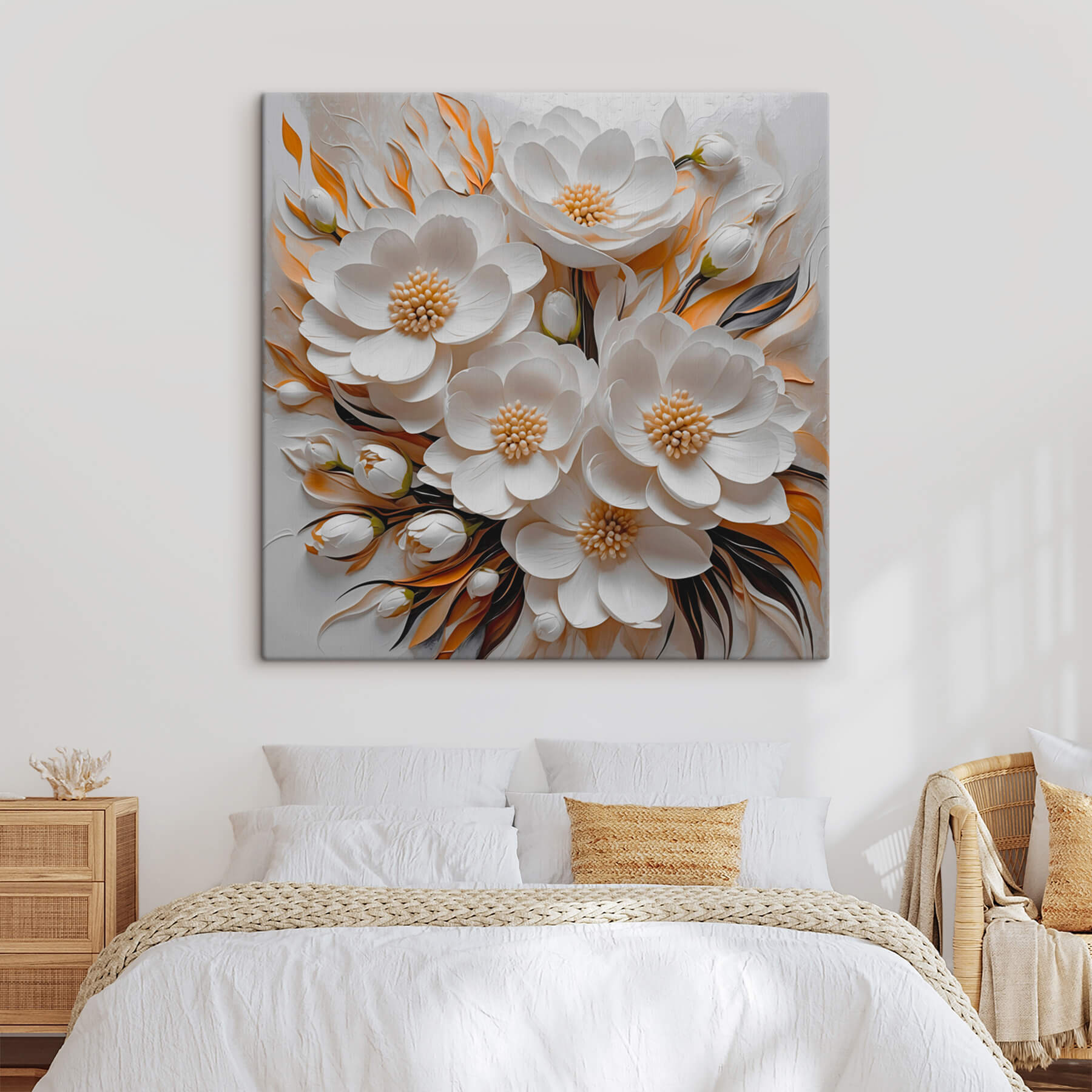 Brighten up any space with “Canvas Prints White Flowers and Leaves.” This exquisite piece is like a breath of fresh air, instantly bringing a pop of nature’s charm indoors. It feels like a cozy spring day, with gentle blooms and soft leaves whispering stories of growth and renewal. Imagine it above a comfy couch or in a sunlit nook—so inviting! The textures will make folks wanna reach out and touch it (seriously, it’s that eye-catching). Perfect for those who love a bit of elegance mixed with nature’s vibe. In a world full of chaos, this artwork is your tranquil retreat!
