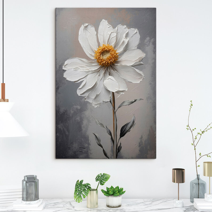 Fleur elk saai hoekje op met deze prachtige canvasprint van een witte bloem met een vrolijk geel hart. Het is alsof je een stukje natuur in huis haalt zonder dat je je zorgen hoeft te maken over water geven! Stel je voor dat het in een gezellige woonkamer hangt of misschien boven een serene leeshoek. Telkens als er iemand langsloopt, denken ze misschien dat het een verse bloem is! De zachte tinten op de achtergrond versterken de charme, waardoor het perfect past bij verschillende inrichtingsstijlen. Het is een mooie manier om een gesprek op gang te brengen en de stemming op te vrolijken. Dus ga je gang, laat deze bloemenpracht een vleugje leven toevoegen aan je interieur!