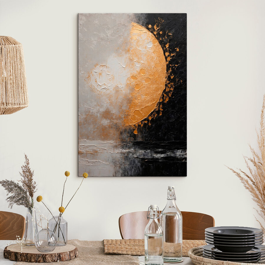 Transformeer je ruimte met deze prachtige canvasprint van een maan, waar kunstzinnigheid het universum ontmoet. Het contrast van licht en donker creëert een fascinerend evenwicht dat de aandacht trekt en nieuwsgierigheid opwekt. Stel je voor dat je met een kopje thee in gedachten verzonken bent terwijl dit werk een vleugje kosmische magie aan je muren brengt. Het is alsof er een stukje nachtelijke hemel binnen handbereik hangt, perfect voor dagdromers en sterrenkijkers. Laat deze op maanlicht geïnspireerde kunst een gespreksstarter zijn of gewoon een rustgevende achtergrond voor het dagelijks leven. Omarm het wonder!