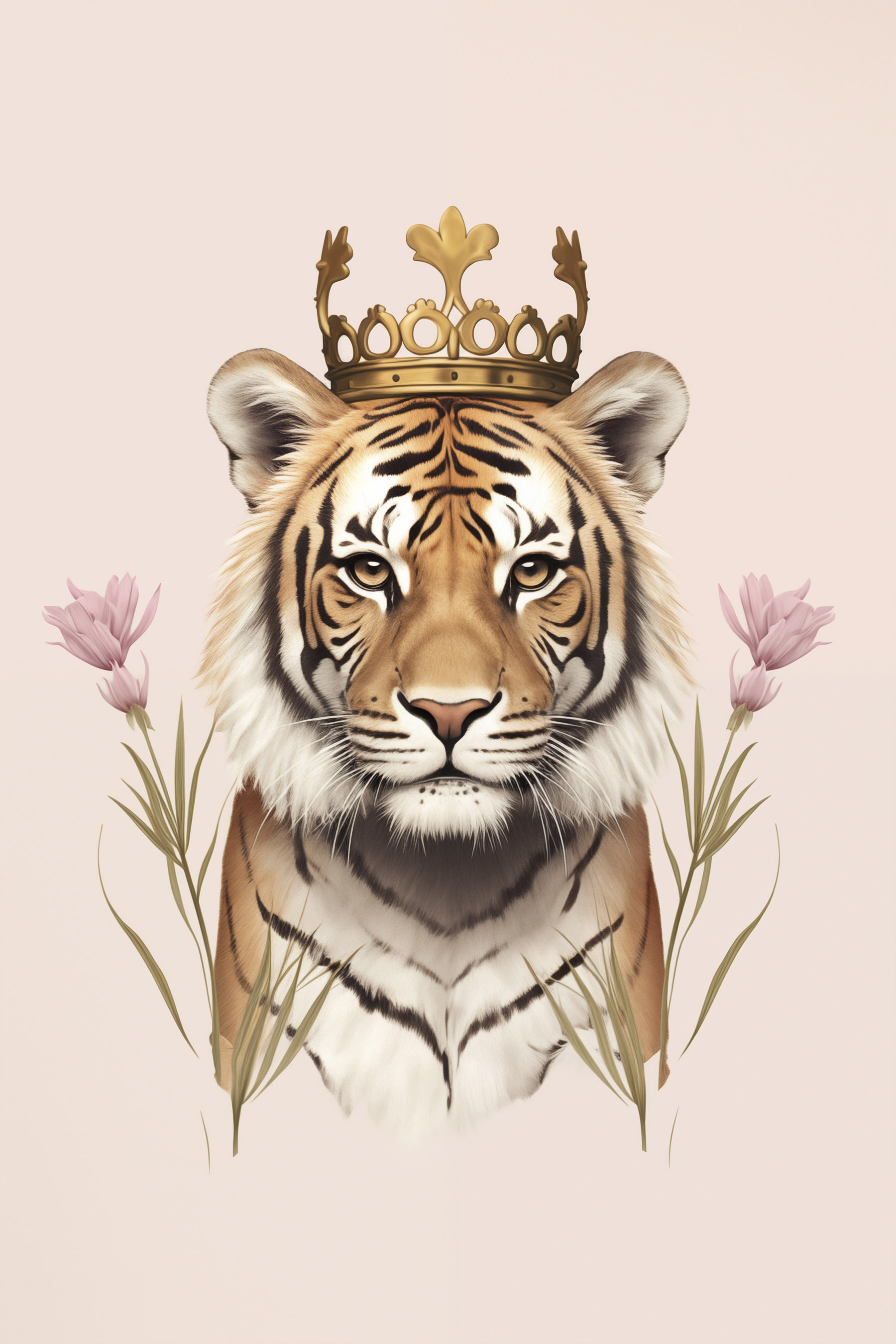 Meet the “Canvas Prints Tiger with a Crown.” This striking piece isn’t just a print—it’s a statement. Just imagine walking into a room and being greeted by the majestic gaze of a regal tiger, flowers blooming beside it. It’s like having a mini royal court right on your wall! This artwork adds a dash of wilderness to any space, making it ideal for those who appreciate nature’s beauty with a hint of whimsy. Friends might ask if it’s a king or just a well-dressed kitty, and that’s the charm! Perfect for brightening a living room or sparking a conversation, this piece will make anyone stop and appreciate—who knew art could be so fierce yet delicate?
