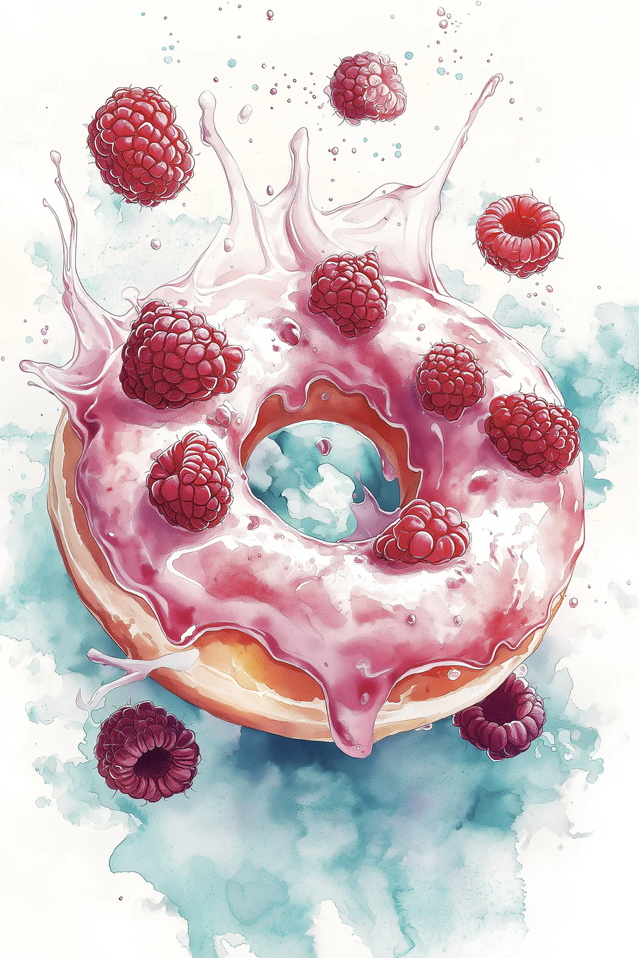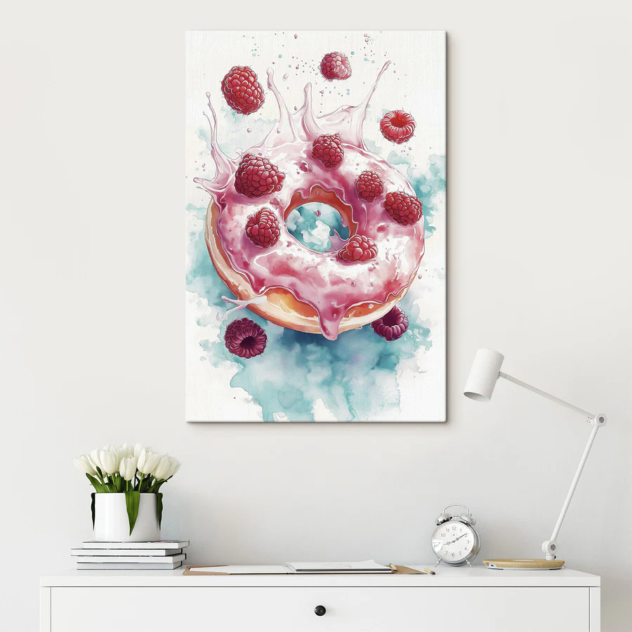 Brighten up any space with this delightful canvas print! Imagine a luscious donut, dripping with pink icing, crowned by perfectly plump raspberries. It’s not just art; it’s a sweet moment captured in watercolor wonder. Hang it in a cozy kitchen or a fun café corner, and watch as it becomes an instant conversation starter—everyone will want to share their favorite donut stories. The vibrant splashes of color add life to walls and maybe even inspire some snack cravings. Who knew art could make you want dessert? Grab this playful piece and let it sprinkle a little joy into daily life!