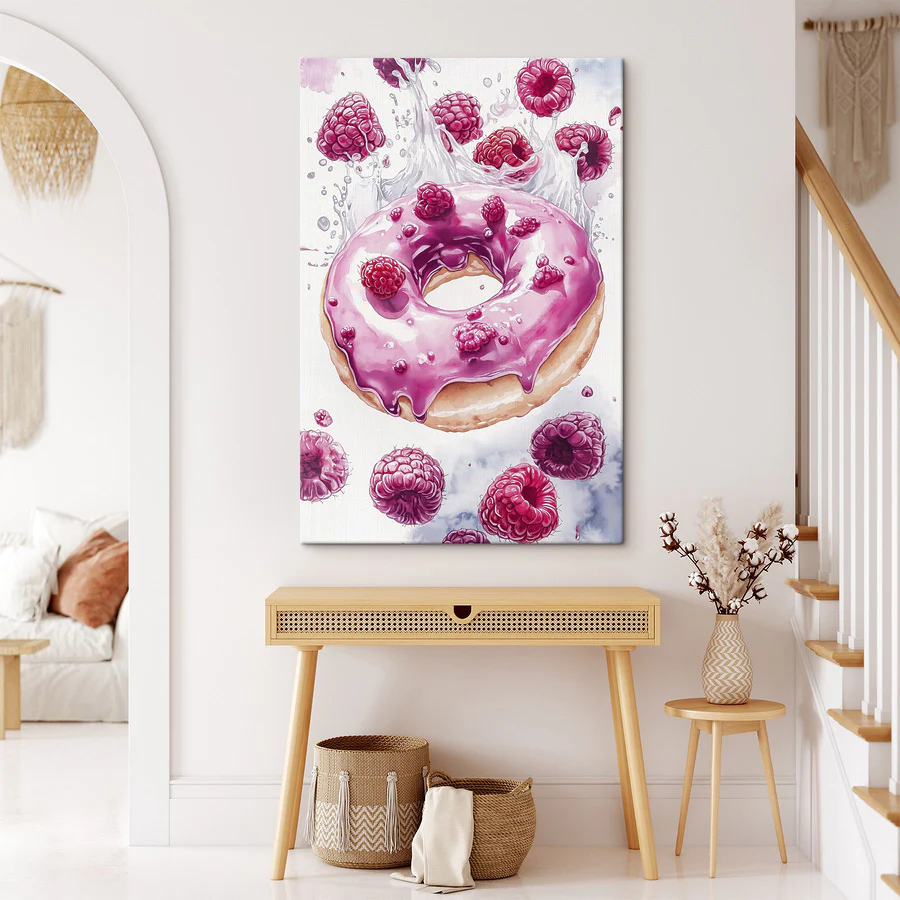 Fleur elke kamer op met deze levendige canvasprint met daarop een overheerlijke donut met sappige frambozen. Het is als een klein feestje voor de ogen, dat een vleugje zoetheid toevoegt aan je kamer. Stel je voor dat je er elke dag langs loopt en een sprankje vreugde voelt – wie zou daar niet om glimlachen? Dit kunstwerk is perfect voor keukens of gezellige hoekjes en heeft een speelse uitstraling die uitnodigt tot een gesprek. Het is bijna een heerlijke traktatie zonder de calorieën! Of je nu gasten ontvangt of geniet van een rustige ochtend, deze donutprint maakt elk moment een beetje zoeter en leuker.