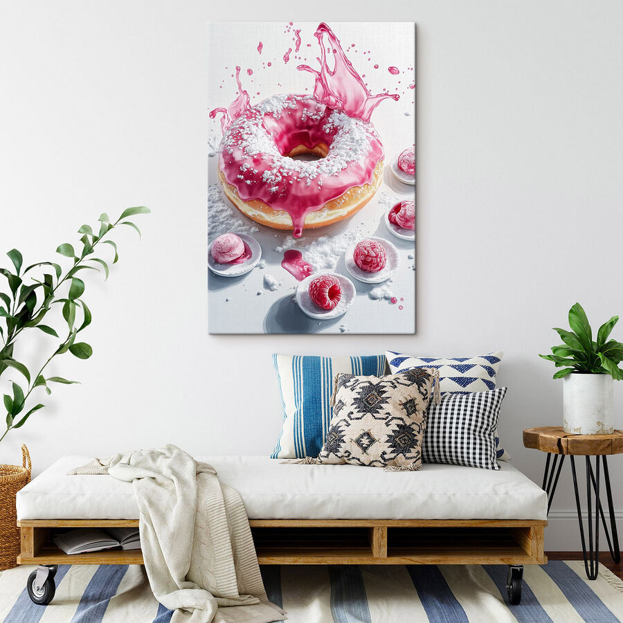 Fleur elke kamer op met deze verrukkelijke canvasprint van een donut bedekt met roze glazuur en een laagje poedersuiker. Het is niet alleen food art, het is pure vreugde vastgelegd op canvas! Stel je voor hoe deze zoete lekkernij in een gezellige keuken of een leuk café hangt en complimenten van gasten uitlokt. Het glanzende glazuur lijkt je bijna uit te nodigen om een hap te nemen – stel je de smaak eens voor! Dit kunstwerk brengt een speelse sfeer en herinnert iedereen eraan dat het soms oké is om jezelf te verwennen. Het is als een klein feestje voor je muren, dat zowel gesprekken als trek opwekt. Perfect voor wie houdt van lekkere traktaties en unieke decoraties!