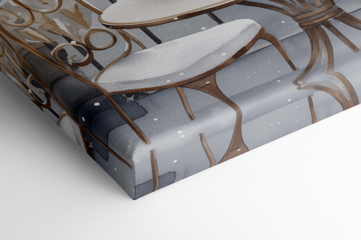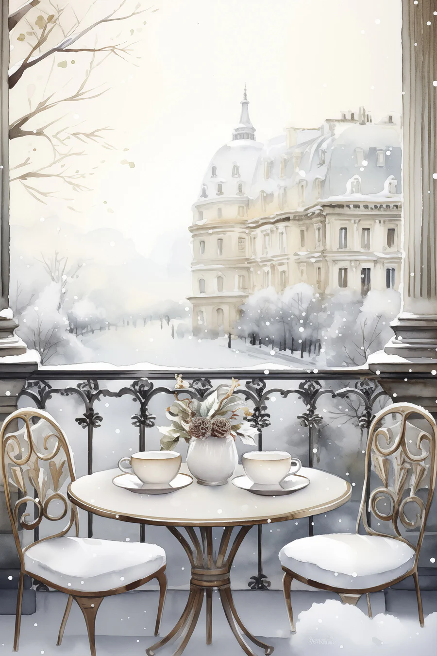 Transformeer uw ruimte met deze betoverende canvasprint, met een gezellige tafel met dampende kopjes en een charmante vaas met bloemen, allemaal tegen een dromerige besneeuwde achtergrond. Stel je eens voor: een rustige winterochtend, sneeuwvlokken dansen buiten terwijl je geniet van je favoriete drankje – deze print legt dat zalige moment perfect vast. De zachte kleuren en serene sfeer nodigen uit tot ontspanning, waardoor het perfect past in elke kamer. Of het nu in de woonkamer is of in een gezellig leeshoekje, dit kunstwerk voegt warmte en charme toe, als een vriendelijke knuffel op een koude dag. Het is niet alleen kunst, het is een ervaring!