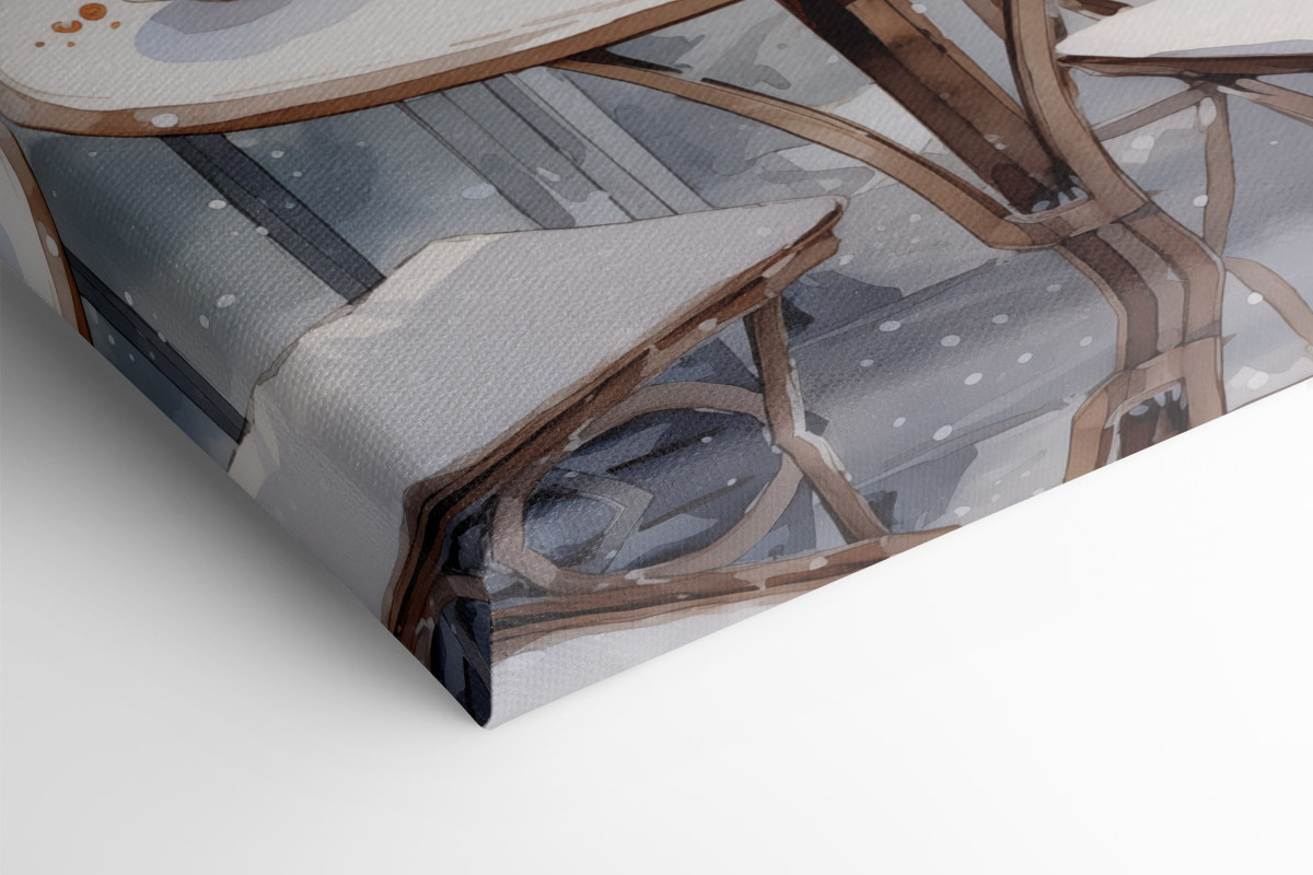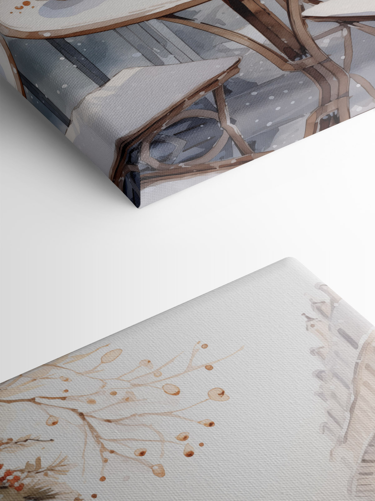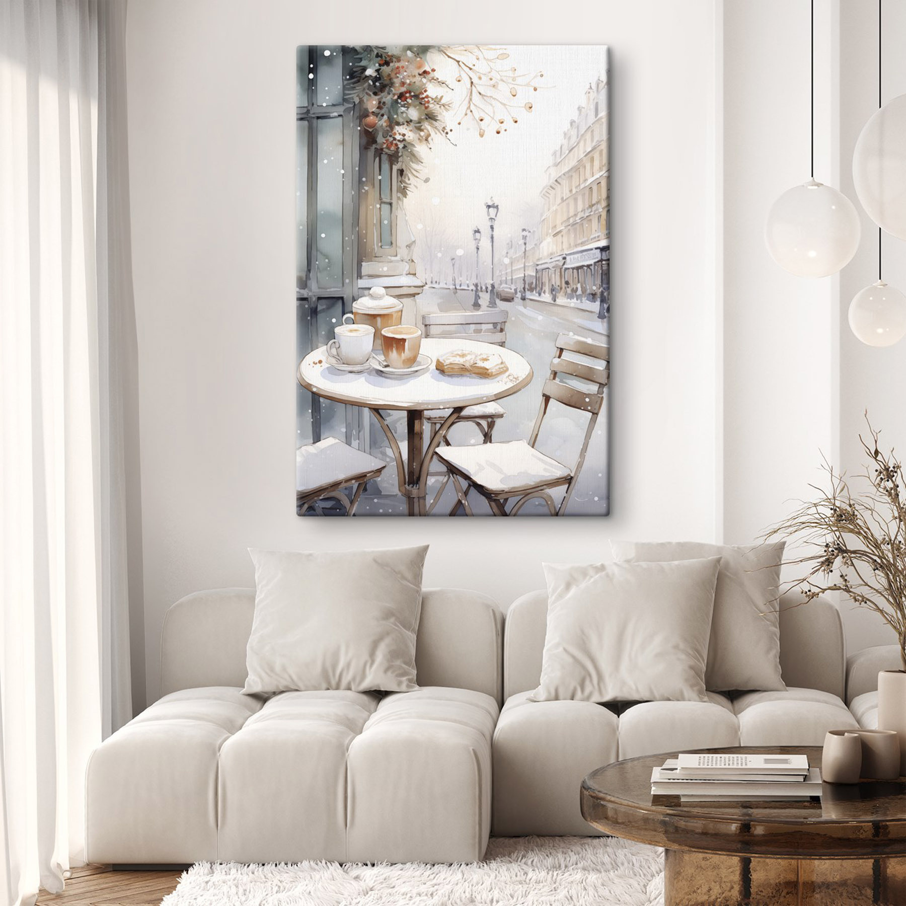 Stel je voor dat je ‘s ochtends aan je koffie nipt in een gezellig café, terwijl de sneeuw buiten zachtjes naar beneden valt, terwijl bladerdeeg croissants je verleiden vanaf de tafel. Deze canvasprint legt precies dat moment vast – perfect voor iedereen die houdt van lekker eten en warme momenten. Het is als een klein venster naar een winters tafereel dat uitnodigt tot dagdromen en gezelligheid. Hang het in de keuken en het is alsof de geur van vers gebak de kamer vult, waardoor elke ochtend speciaal aanvoelt. Het is niet zomaar kunst; het is een ervaring die je ruimte zal opfleuren en je smaakpapillen zal laten tintelen.