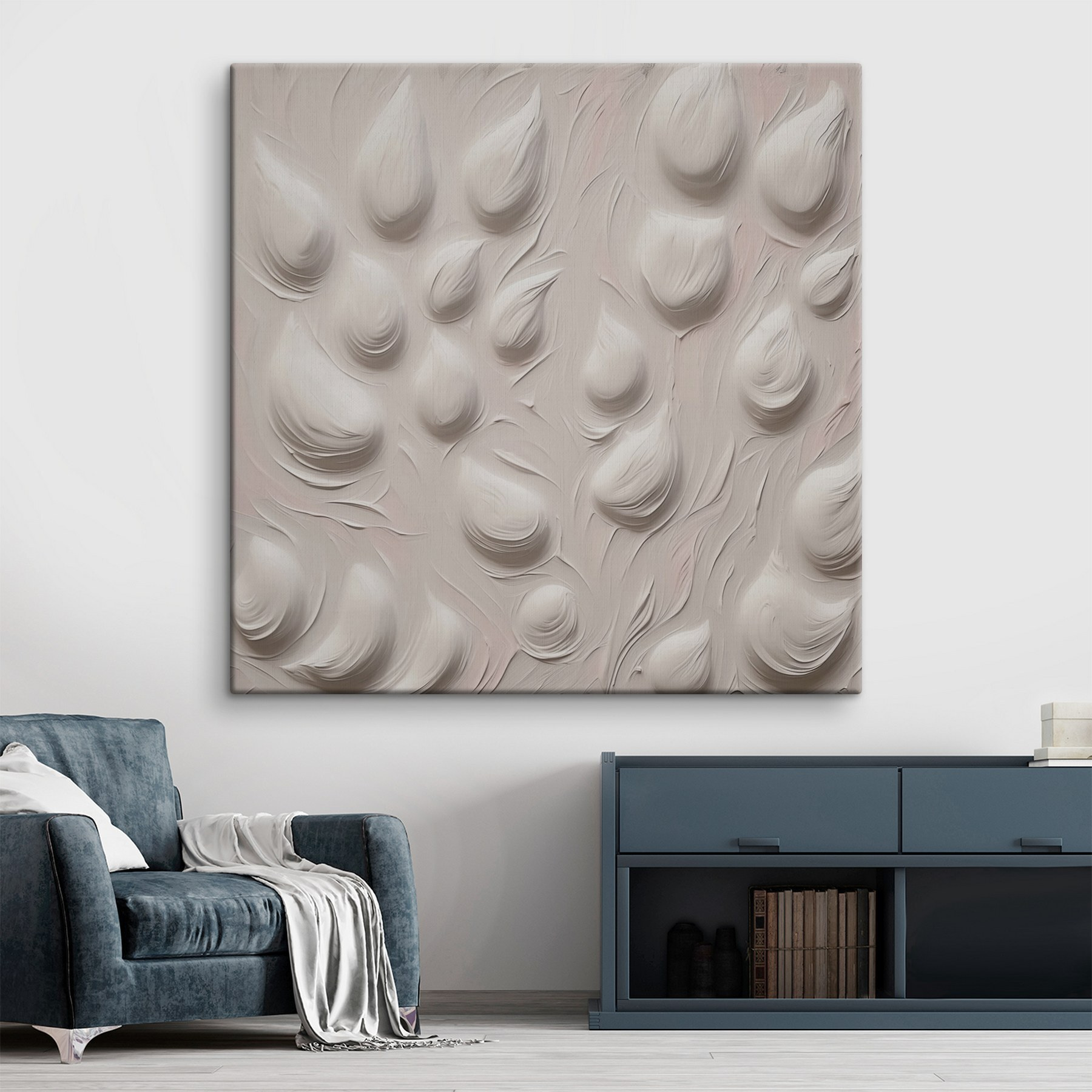 Stel je voor dat je een kamer binnenloopt en wordt begroet door een prachtige muurschildering die eruitziet alsof er net een lenteregen op is gevallen – die delicate druppels lijken je bijna uit te nodigen om binnen te komen. Dit doek, met zijn zachte textuur en rustgevende witte achtergrond, creëert een sfeer die zowel kalmerend als chic is. Het is alsof je nipt van een warm kopje thee terwijl je kijkt naar bloemblaadjes die dansen in de wind. Dit kunstwerk is perfect om een ruimte fris en luchtig te maken en straalt elegantie uit zonder om aandacht te schreeuwen. Hang het op, leun achterover en laat die zachte rondingen je meevoeren naar een vrediger moment. Je muren zullen je dankbaar zijn!