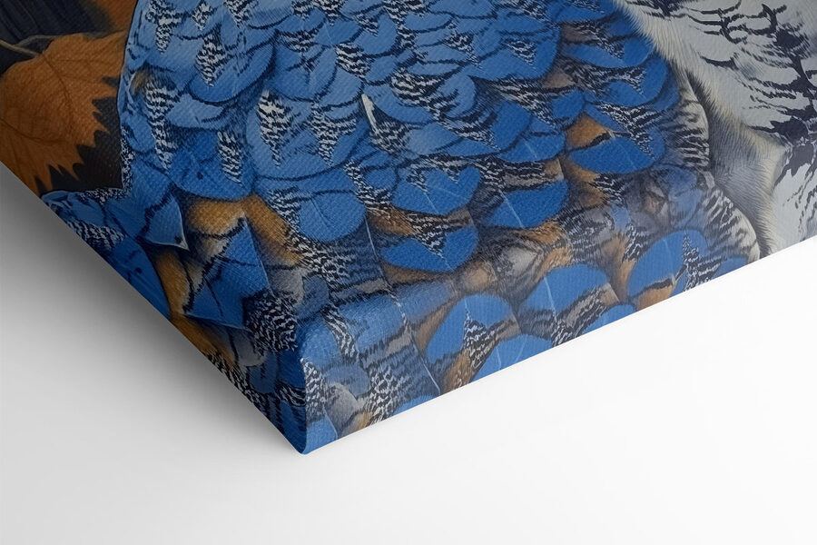 Transformeer elke ruimte met deze betoverende canvasprint van een uil met opvallende gele ogen. Het lijkt wel alsof hij op het punt staat om de laatste roddels uit het bos te delen – schattig! De levendige blauwe en aardse tinten creëren een warme, uitnodigende sfeer die een kamer tot leven brengt. Stel je voor dat je deze print ophangt in een gezellig leeshoekje, waar vrienden hem kunnen bewonderen terwijl ze thee drinken en praten over de mysteries van het universum. Het is een vrolijke herinnering aan de schoonheid van de natuur en precies het juiste gespreksonderwerp. Perfect voor dierenliefhebbers of iedereen die op zoek is naar een vleugje eigenzinnigheid!