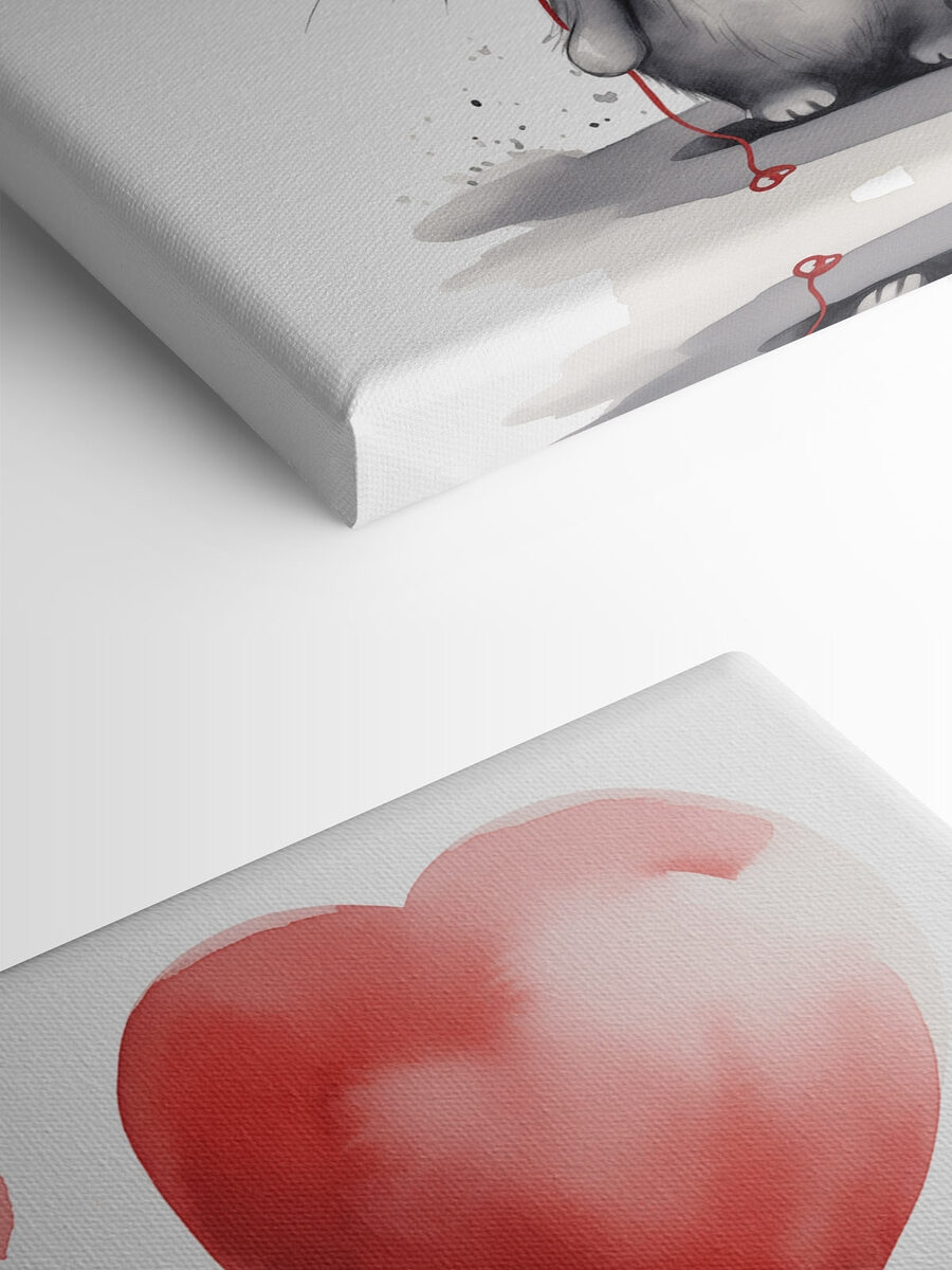 Maak kennis met de speelse en charmante canvasprint ‘Cat Holding Balloons’. Dit vrolijke kunstwerk brengt een speelse sfeer in elke ruimte, met onze harige vriend met zijn grote ogen en hartvormige ballonnen die rechtstreeks naar je hart lijken te zweven. Stel je voor hoe dit kleine ventje een kinderkamer opfleurt of een gezellig leeshoekje een vrolijke noot geeft. Het zachte aquarelpalet is als een warme knuffel: uitnodigend en gezellig. Als je het ophangt, heb je een vrolijke metgezel die nooit om snoepjes vraagt, maar altijd een glimlach schenkt! Het is de perfecte gespreksstarter, die gegarandeerd de stemming verbetert en vreugde brengt. Hang het op en zie hoe je ruimte verandert!