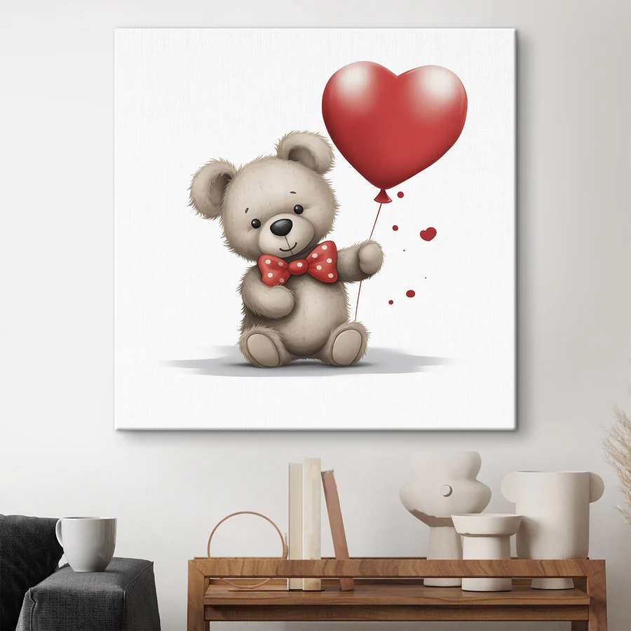 Meet the cutest little companion you’ll want hanging out on your wall! This charming canvas print features a teddy bear holding a heart-shaped balloon, radiating warmth and sweetness. Imagine walking by it each day; the way it’ll brighten your mood—like a little hug that doesn’t let go. Perfect for a child’s room or even a cozy living space where you want a sprinkle of joy. It’s not just wall art; it’s a reminder of love and light. Plus, who doesn’t love a bear in a bowtie? With its gentle colors, this piece brings a playful touch, making any room feel like a happy place. Honestly, it might just steal the show!