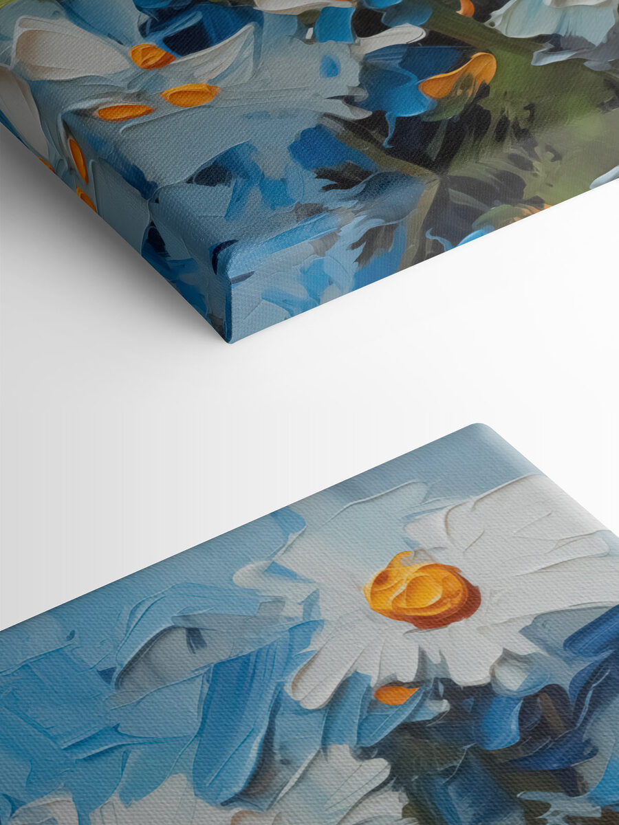 Fleur elke ruimte op met deze prachtige canvasprint van madeliefjes die dansen in een blauwe lucht. Stel je voor dat je wakker wordt met deze uitbarsting van vrolijkheid – het is alsof je een stukje natuur in huis hebt, klaar om vreugde te brengen. Stel je een gezellige leeshoek voor of een levendige keuken vol gelach. De kleuren zijn zo fris dat ze je ervan kunnen overtuigen dat de lente eeuwig duurt. Het is een perfecte gespreksstarter of een zoete herinnering om even te stoppen en aan de bloemen te ruiken, zelfs als ze alleen maar aan de muur hangen. Wie wist dat een bos madeliefjes een glimlach op je gezicht kon toveren?