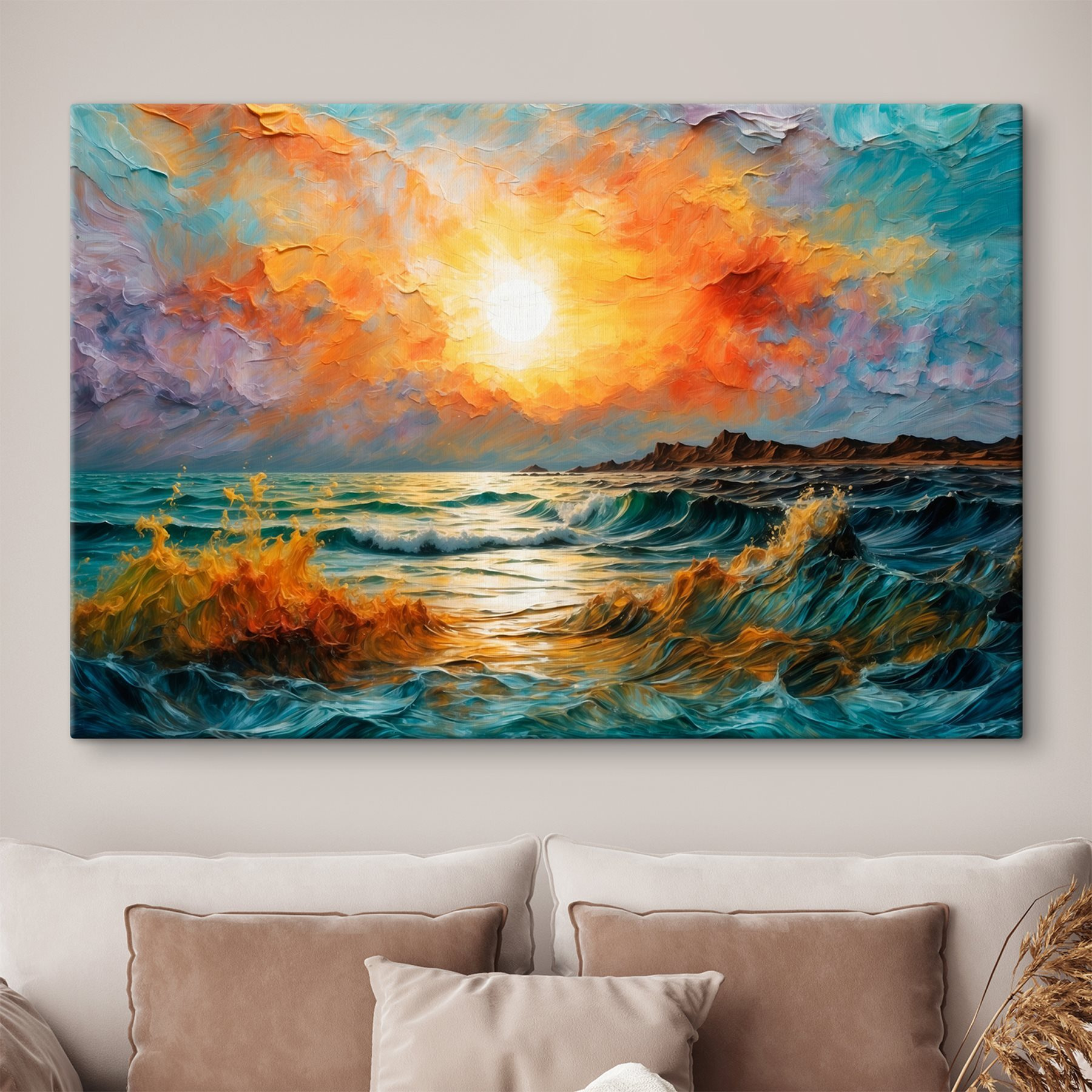 Bring the warmth of a sunset right into your home with this stunning canvas print. Imagine coming home after a long day and being greeted by a burst of vibrant colors reflecting off tranquil waters. The rich oranges and blues invite you to pause, breathe, and forget about that never-ending to-do list. It’s like having a piece of paradise on your wall—no sunscreen required!