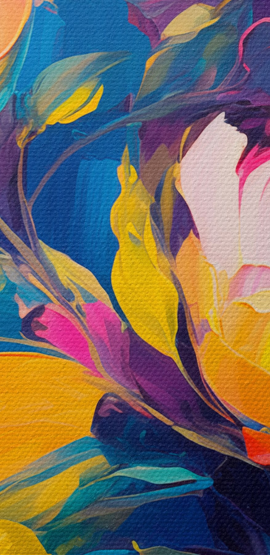 Brighten up any room with this gorgeous canvas print of flowers dancing against a deep blue backdrop. It’s like a bouquet that never wilts, bringing a splash of color and joy without the need for a watering can. Imagine glancing at it while sipping coffee on a lazy Sunday or gathering friends for a game night—the vibrant hues will spark conversations and lift spirits. Perfect for adding a pop of cheer to your living room or giving that awkward blank wall some personality. Just think of it as a daily reminder that beauty can be effortless and everywhere. Who wouldn’t want that?