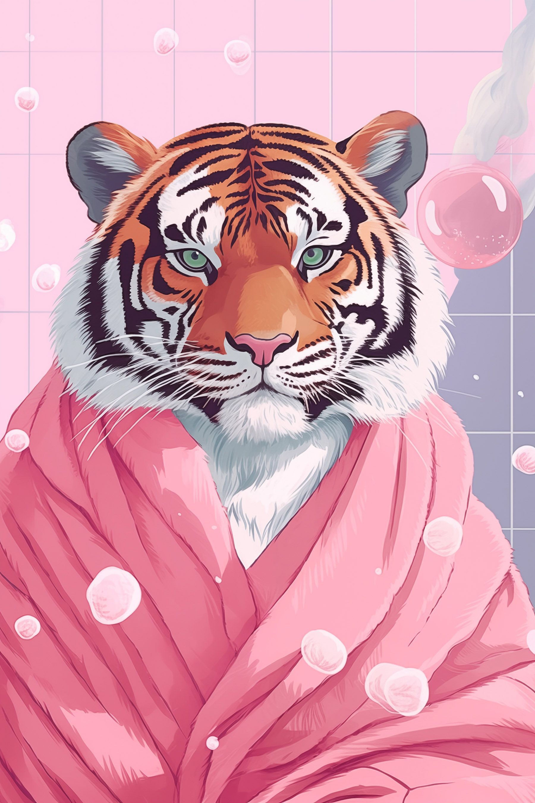 Maak kennis met je nieuwe decoratie-obsessie: een opvallende canvasprint van een tijger die luiert in een roze badjas, compleet met bubbels voor dat extra vleugje eigenzinnigheid. Stel je voor hoe deze katachtige fashionista je muur siert en een sfeer van ontspannen zelfvertrouwen uitstraalt. Het lijkt alsof hij net terugkomt van een dagje spa, en wie wil dat nu niet in zijn woonkamer? Perfect voor dierenliefhebbers of iedereen met een voorliefde voor eclectisch – en laten we eerlijk zijn, wie heeft er nu geen behoefte aan een beetje onverwachte charme in zijn leven? Haal wat speelse elegantie in huis en zie hoe je gasten twee keer kijken. Een gespreksstarter, dat is zeker!