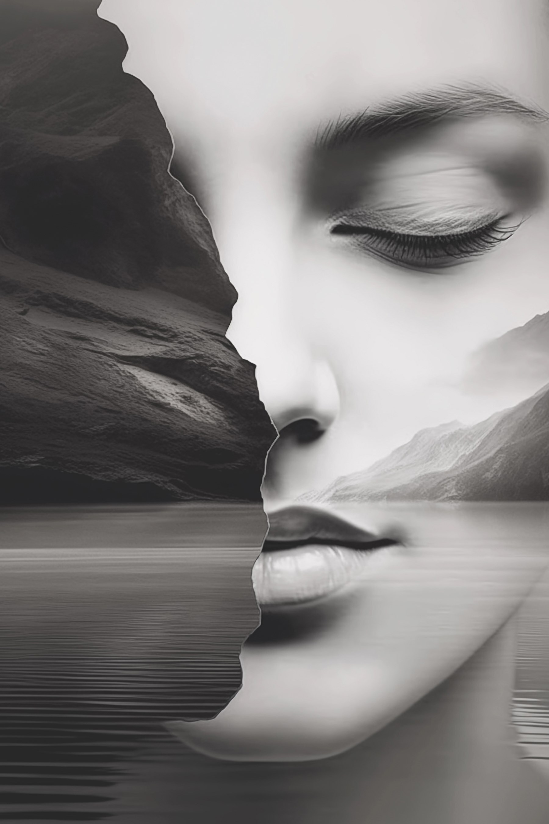 This stunning canvas print, featuring a woman’s face merged with a tranquil landscape, brings a unique vibe to any space. Imagine it gracing your living room wall, catching the eye of anyone who enters. The black and white tones create a lovely, soothing contrast—perfect for those moments when the world’s a bit too loud. It’s like a gentle reminder to pause and reflect.