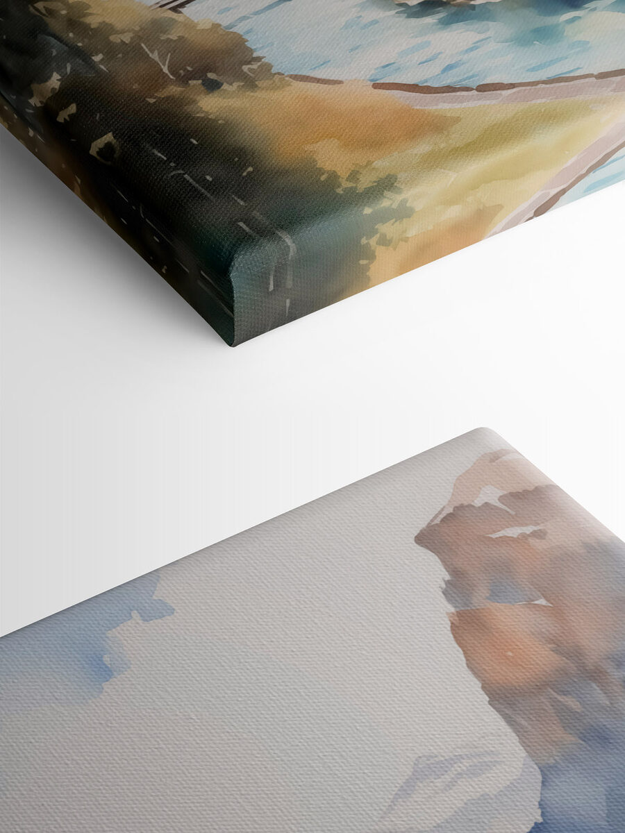 Stel je voor dat je een charmant dorpje binnenstapt, genesteld tussen torenhoge bergen. Deze aquarelprint op canvas legt precies dat vast: de serene schoonheid van een toevluchtsoord in de bergen. Zachte blauwtinten vermengen zich met warme aardetinten en creëren een gezellige sfeer waarin je je meteen thuis voelt. Hang het in je woonkamer en zie hoe het gesprekken op gang brengt over avonturen, verborgen toevluchtsoorden en dromen over reizen naar plekken als deze. De sierlijke penseelstreken van het schilderij brengen een gevoel van rust, net als een zacht briesje dat door de bomen ruist. En wie houdt er nou niet van een kunstwerk dat fluistert: “Ontspan, je bent op vakantie”? Perfect voor iedereen die dat vleugje natuur wil zonder de bank te verlaten!