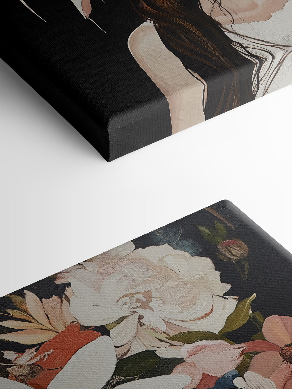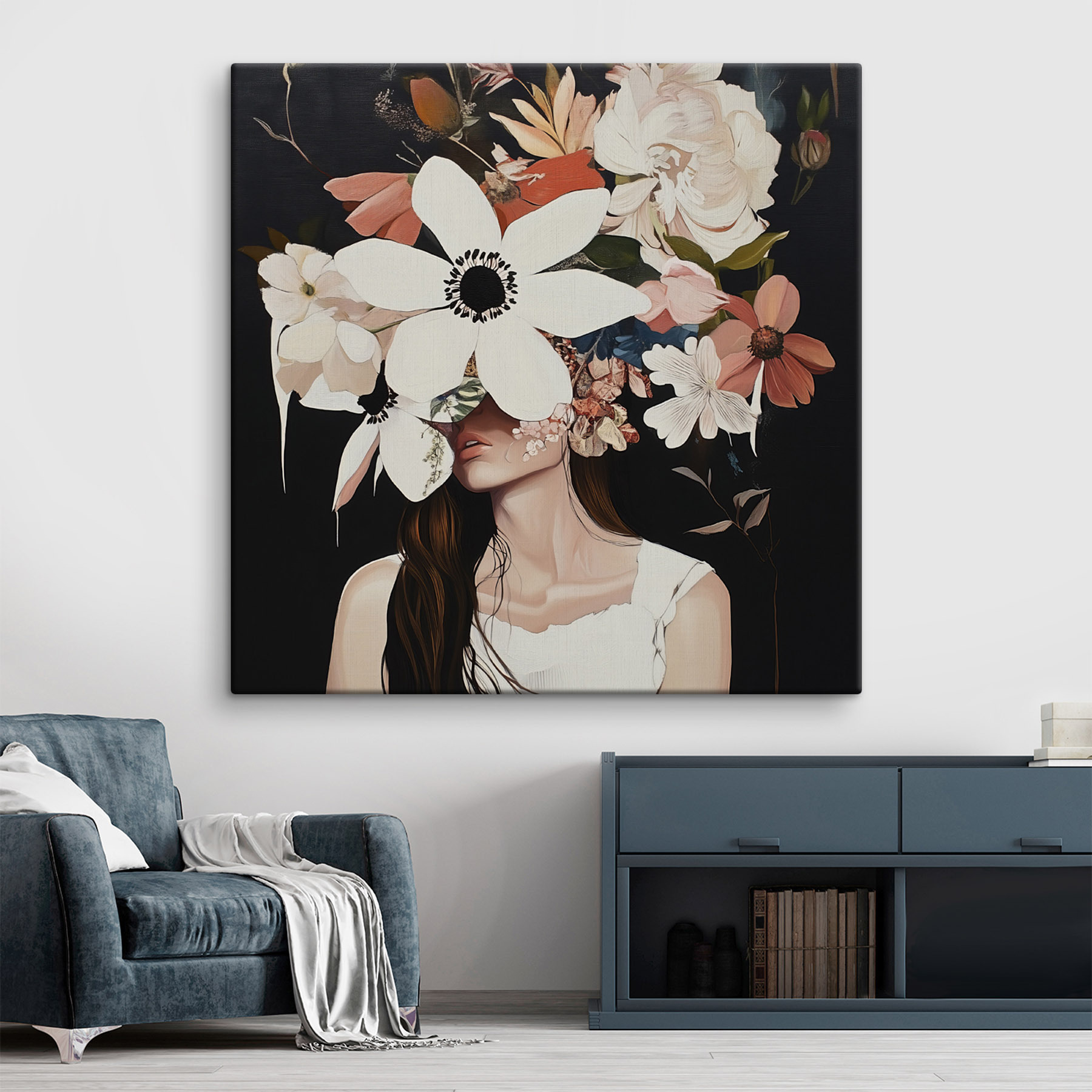 Fleur je kamer op met deze prachtige canvasprint van een vrouw versierd met een waterval van bloemen. Het is alsof ze alle bloemen uit de tuin heeft verzameld en heeft gezegd: “Laten we feesten!”. Het contrast van de donkere achtergrond laat die levendige bloemen eruit springen, bijna alsof ze uitreiken naar de kijker. Stel je voor dat je elke dag langs deze schoonheid loopt – het zou zomaar een glimlach of twee kunnen ontlokken. Perfect voor een woonkamer of een gezellig hoekje, dit stuk fluistert naar de charme van de natuur en een vleugje eigenzinnigheid. Geef je muur een vleugje moderne kunst magie en laat het gesprekken op gang brengen!