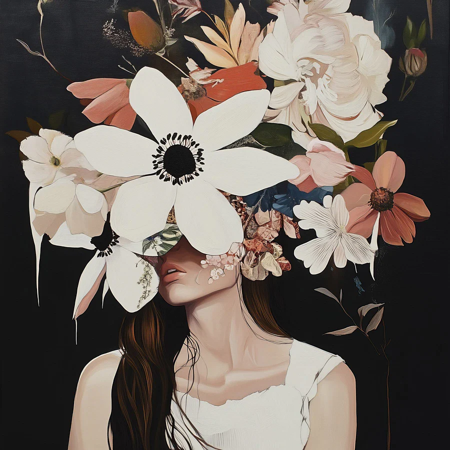 Fleur je kamer op met deze prachtige canvasprint van een vrouw versierd met een waterval van bloemen. Het is alsof ze alle bloemen uit de tuin heeft verzameld en heeft gezegd: “Laten we feesten!”. Het contrast van de donkere achtergrond laat die levendige bloemen eruit springen, bijna alsof ze uitreiken naar de kijker. Stel je voor dat je elke dag langs deze schoonheid loopt – het zou zomaar een glimlach of twee kunnen ontlokken. Perfect voor een woonkamer of een gezellig hoekje, dit stuk fluistert naar de charme van de natuur en een vleugje eigenzinnigheid. Geef je muur een vleugje moderne kunst magie en laat het gesprekken op gang brengen!