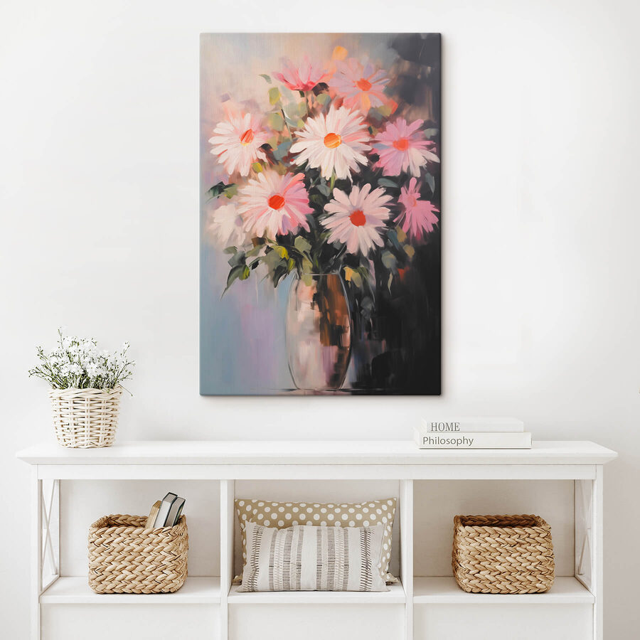 Transformeer je ruimte met deze prachtige canvasprint van bloemen in een vaas. Het is alsof je een tuin in huis haalt zonder het gedoe van water geven of onkruid wieden! De zachte bloesems steken af tegen de dromerige achtergrond, waardoor de stemming er meteen beter op wordt. Stel je voor dat je op een zondagmiddag ontspant, koffie drinkt en verdwaalt in de zachte kleuren terwijl ze je woonkamer of slaapkamer opfleuren. Perfect voor iedereen die houdt van een vleugje natuur, al hangt het maar aan de muur. Een beetje bloemencharme en wie weet? Het zou je wildste tuindromen kunnen aanwakkeren – of je er op zijn minst aan herinneren om even stil te staan en aan de bloemen te ruiken.