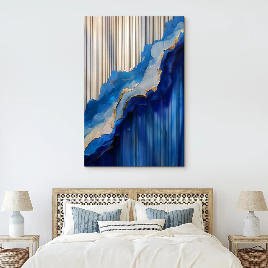 Duik in een wereld van rustgevende blauwtinten met deze fascinerende canvasprint. Het is alsof de oceaan heeft besloten om zijn beste golven naar binnen te halen, gelaagd en vloeiend met kunstzinnige elegantie. De wervelingen en texturen lijken samen te dansen en nodigen je uit om in gedachten te verzonken te raken. Stel je voor dat je ‘s ochtends aan je koffie nipt en de stress van de dag van je af voelt glijden. Dit stuk is niet alleen decor; het is een stemmingsmaker, een gespreksstarter en een vriendelijke herinnering dat schoonheid zowel gedurfd als sereen kan zijn. Perfect voor een gezellig hoekje of een lichte woonkamer, het voegt die unieke flair toe waar elke ruimte naar hunkert. Bovendien is het een gemakkelijke manier om elke ruimte te verfraaien zonder dat je er veel voor hoeft te doen. Wie wist dat kunst zo uitnodigend kon zijn?