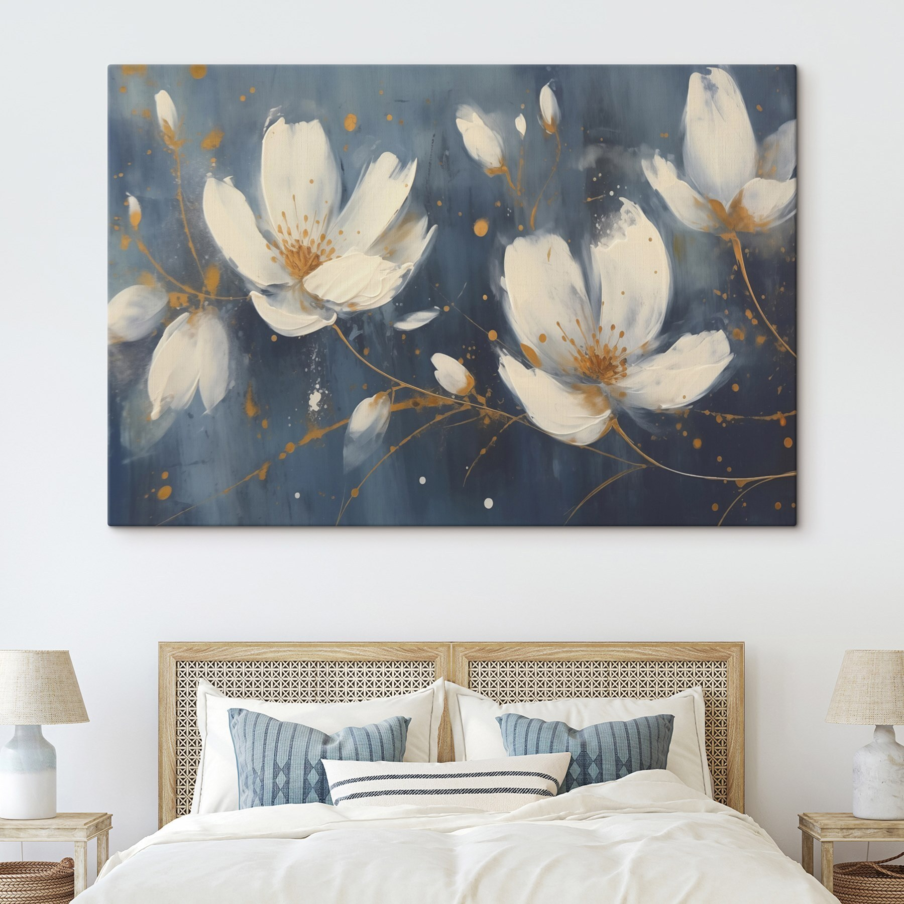 Stel je voor dat je een kamer binnenstapt die aanvoelt als een frisse wind. Deze canvasprint van witte bloemen doet precies dat! De gedurfde bloemen dansen tegen een rustgevende achtergrond en creëren een moeiteloze sfeer die je meteen een beetje opvrolijkt. Stel je gezellige avonden voor met een kopje thee, waarbij het zachte licht de bloemblaadjes precies goed vangt. Het is alsof je eigen tuin in bloei staat, zonder de vervelende bijen. Of het nu in een moderne woonkamer of een chique slaapkamer is, dit kunstwerk voegt een vleugje elegantie en warmte toe. Het trekt de aandacht en brengt gesprekken op gang, waardoor het een perfecte aanwinst is voor elke ruimte.