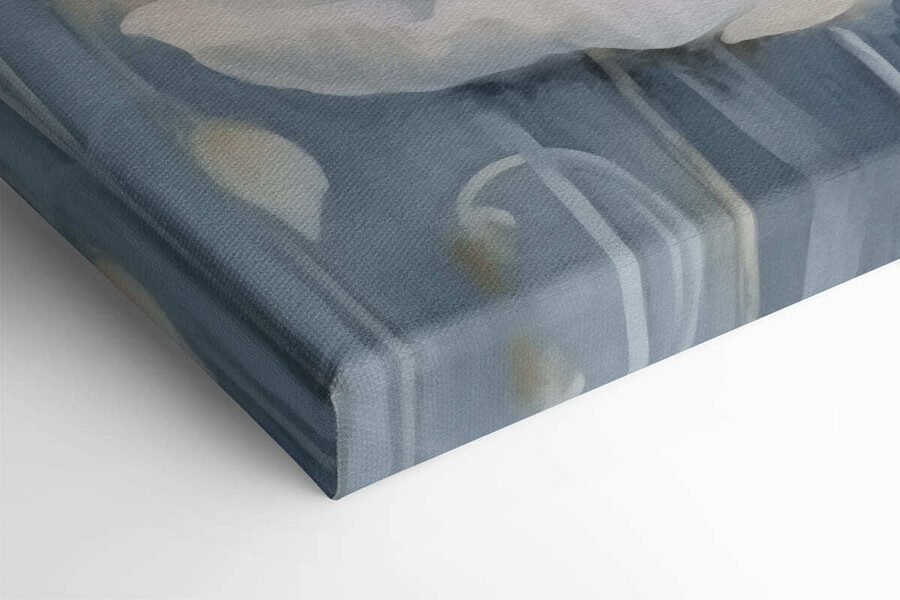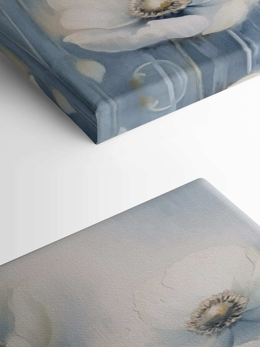 Stel je voor dat je een kamer binnenloopt die direct frisser aanvoelt, een beetje alsof de lente heeft besloten om zich thuis te voelen. Deze canvasprint, met zijn delicate witte bloemen, brengt een serene charme die elke ruimte kan opfleuren. De rustgevende kleuren nodigen uit tot kalmte, waardoor het perfect is voor een gezellig leeshoekje of zelfs die lege muur waar je al tijden tegenaan zit te hikken. Stel je voor: een vriend ploft neer op de bank en zijn ogen dwalen af naar deze bloemenpracht, die de energie van de kamer verzacht. Het is alsof je een klein tuintje aan de muur hebt, zonder de gieter en de vervelende beestjes. Gewoon pure, eenvoudige vreugde.