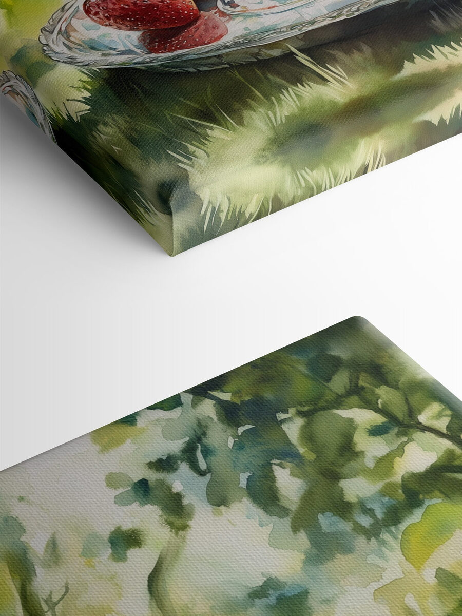 Stel je voor dat je een gezellige ruimte binnenloopt en begroet wordt door deze betoverende canvasprint van verfrissende drankjes en mollige aardbeien. Het is net een stukje zomer dat warmte en vrolijkheid brengt aan elke muur. Stel je voor dat je aan iets heerlijks nipt terwijl het zonlicht door de bladeren filtert en speelse schaduwen door de kamer werpt. Dit kunstwerk verandert een alledaags moment in een feest – perfect voor elke keuken of eethoek. Het is een uitnodiging om samen te komen, verhalen te delen en te genieten van eenvoudige genoegens. Een vleugje natuur dat vreugde opwekt en misschien zelfs inspireert tot een spontane picknick!