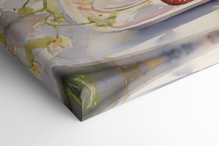 Transformeer elke ruimte met deze prachtige aquarel canvasprint met twee sprankelende glazen champagne en een royale portie aardbeien. Het is een charmante herinnering aan zonnige middagen en gezellige bijeenkomsten, die een feestelijk gevoel oproepen. Stel je voor dat dit kunstwerk in een keuken of eetkamer hangt, waar het gesprekken op gang brengt en de stemming verhoogt. Door de zachte tinten past het gemakkelijk bij elke interieurstijl – alsof je een vleugje vreugde aan je muren toevoegt. Bovendien, wie wil er nu niet herinnerd worden aan het genieten van bubbels en vers fruit? Perfect voor een toast – voeg gewoon vrienden toe!