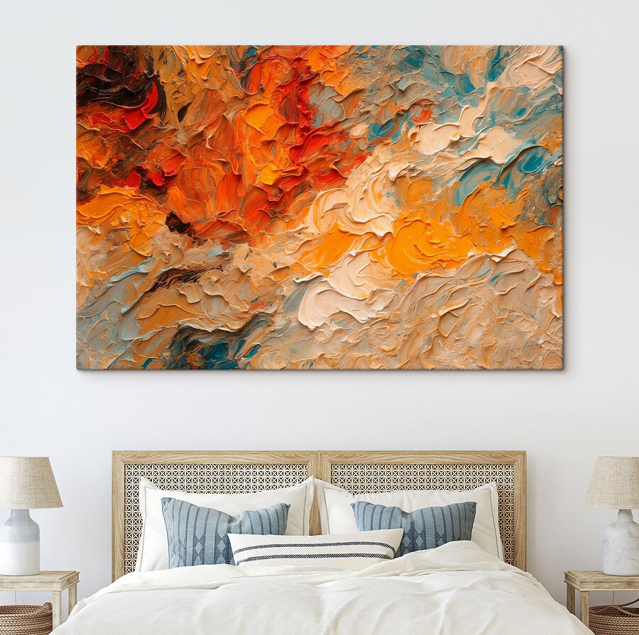 Tover elke kamer om in een levendige oase met deze canvasprint met abstracte kleuren die als een speelse dans in elkaar overgaan. Het is alsof je een zonsondergang naadloos ziet overgaan in een zonsopgang, en dat allemaal in je woonkamer. Stel je voor dat je na een lange dag op de bank neerploft en je ogen dwalen naar dit levendige werk dat vreugde en creativiteit opwekt. De warme sinaasappels en koele blauwtinten inspireren misschien wel tot een spontaan avontuur of een gezellige avond met vrienden die samen lachen. Het is niet alleen kunst; het is een gevoel dat de stemming opfleurt en het hart opent.