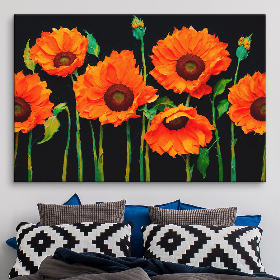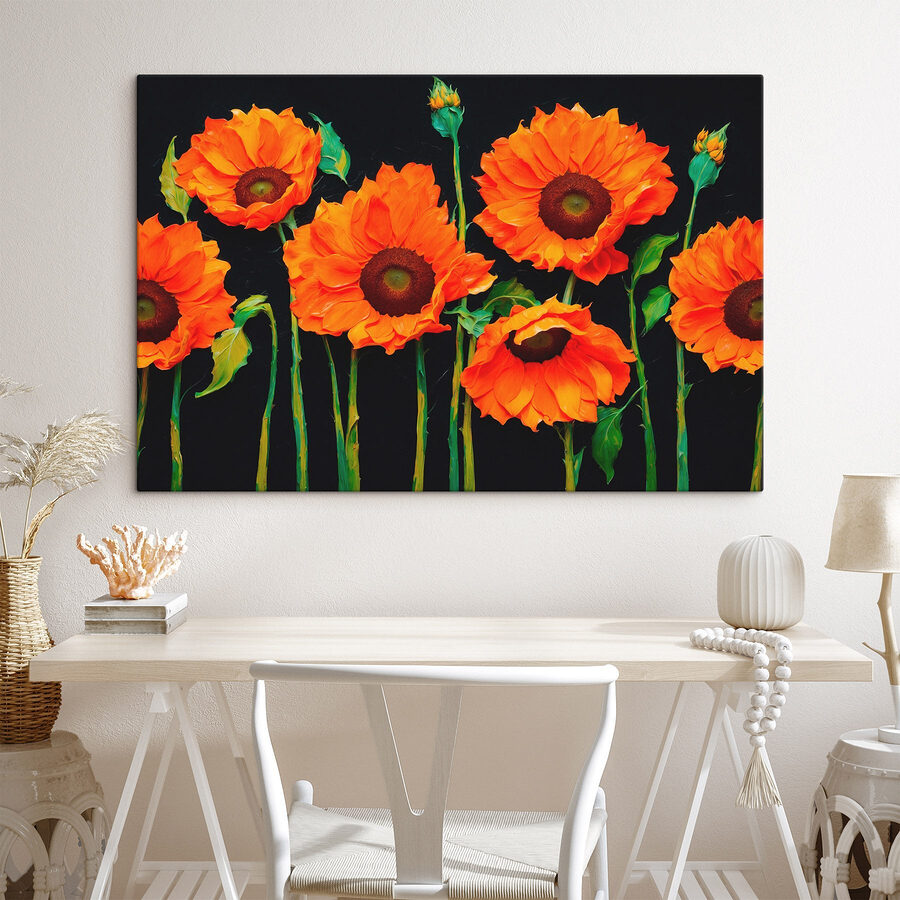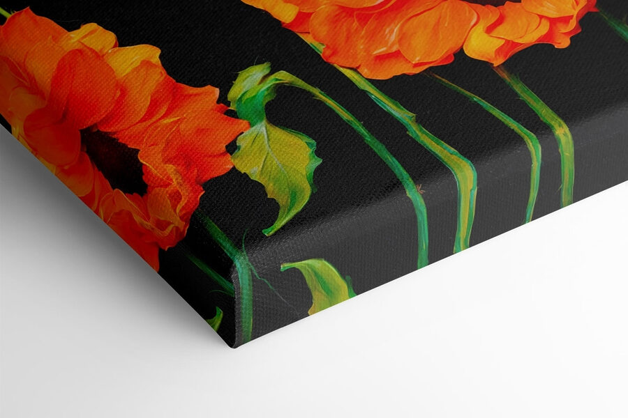 Fleur elke ruimte op met dit levendige canvas van oranje bloemen die bijna van de muur springen. De gedurfde bloemen tegen een diepe achtergrond zorgen ervoor dat een kamer uitnodigender en vrolijker aanvoelt. Stel je voor dat je ‘s ochtends aan je koffie nipt terwijl deze schoonheden je begroeten; het is alsof je een vrolijke tuin binnenshuis hebt. Ze hebben die levendige energie die je gewoon naar binnen trekt en je doet glimlachen bij elke blik. Perfect voor een woonkamer of zelfs een gezellig hoekje, ze schreeuwen persoonlijkheid zonder een woord te zeggen. Wie heeft er een zonnige dag nodig als je muren de zon kunnen brengen?