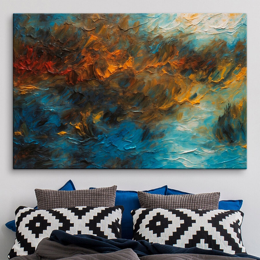 Tover elke muur om in een levendig meesterwerk met deze canvasprint van wervelende kleuren en verfwolkenmagie. Stel je voor dat je een kamer binnenloopt waar de kleuren dansen en je een wereld van creativiteit in trekken. Het is als een uitbarsting van persoonlijkheid – perfect voor een woonkamer of die gezellige leeshoek waar je van droomt. Vrienden zullen vragen: “Waar heb je dat vandaan?” en jij kunt glimlachen, wetende dat je een uniek stuk hebt dat karakter toevoegt aan je ruimte. Het fluistert verhalen van artisticiteit en verbeelding, waardoor elk moment een beetje specialer aanvoelt. Perfect voor iedereen die behoefte heeft aan een vleugje kleur en warmte in het canvas van hun leven.