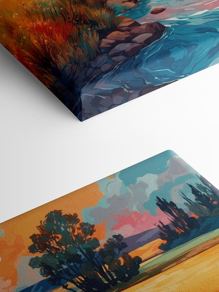 Stel je een zonovergoten middag voor, waar een zachte rivier door velden met goudkleurig gras kronkelt en het decor vormt voor dromen over zomeravonturen. Met deze canvasprint haal je die rust in huis. Het levendige blauw en warme geel dansen samen en geven leven aan elke hoek die het siert. Stel je het voor boven een knusse bank of in een hal, waar het bij elke blik een gevoel van rust verspreidt. Het is als een kleine ontsnapping die je herinnert aan de schoonheid van de natuur, zelfs op drukke dagen. Perfect voor wie gelooft dat er magie schuilt in het alledaagse – deze print nodigt uit tot dagdromen en een glimlach.