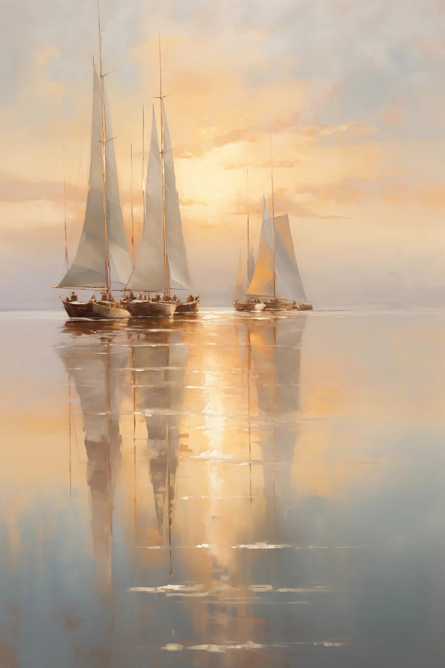 Imagine stepping into a serene world every time you glance at this stunning canvas of sailboats gliding over a calm sea. The gentle hues of sunset splash warmth across the sky, making it feel like a cozy embrace. This piece doesn’t just hang on the wall; it invites lazy afternoons sipping lemonade and daydreaming about far-off shores. Picture guests drifting into your space, taking a moment to soak in the serene vibe. Each glance is a little getaway—perfect for anyone who loves nature and the calm of the ocean. Plus, it might just inspire an unexpected sailing adventure—who knows?