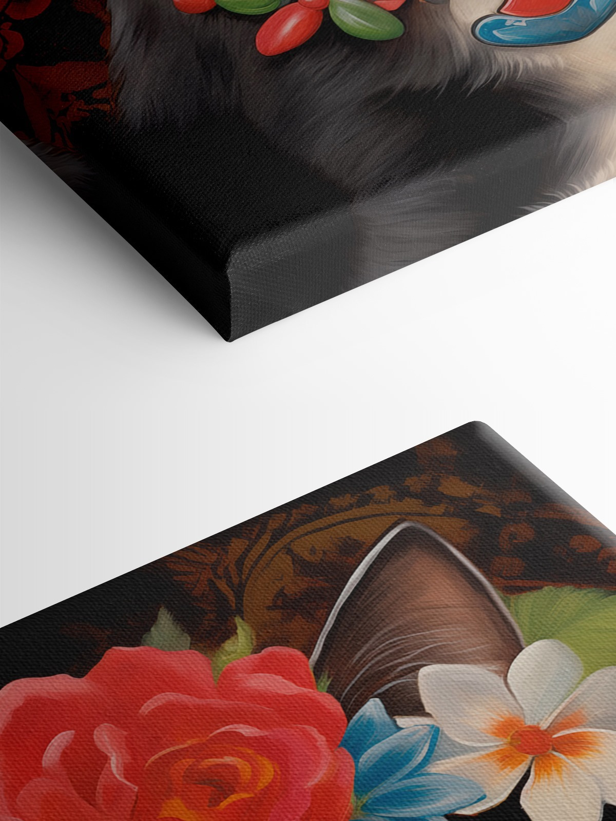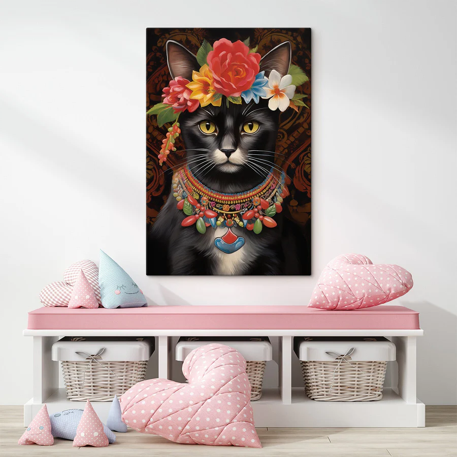Transformeer je ruimte met deze prachtige canvasprint met een schattige kat met een bloemenkroon op. Echt, wat is er niet leuk aan? Deze kleine katachtige fashionista is gekleed om indruk te maken, met een bos kleurrijke bloemen die zelfs de somberste dag kunnen opvrolijken. Stel je voor dat hij aan je muur hangt en elke kamer meteen een beetje vrolijker en een stuk eigenzinniger maakt.