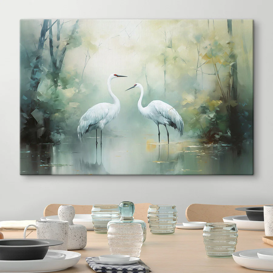 Transform your space with this enchanting canvas print featuring a couple of elegant white birds gliding gracefully in a tranquil pond. The soft colors and dreamy background create a serene atmosphere—perfect for unwinding after a long day. Imagine catching a glimpse of these lovely creatures every morning, bringing a sense of peace and harmony. It’s like having a slice of nature right in your living room. Ideal for animal lovers or anyone who appreciates fine art, this piece might even spark the occasional daydream about quiet lakeside strolls or lazy afternoons. A delightful addition that whispers calmness with every glance!