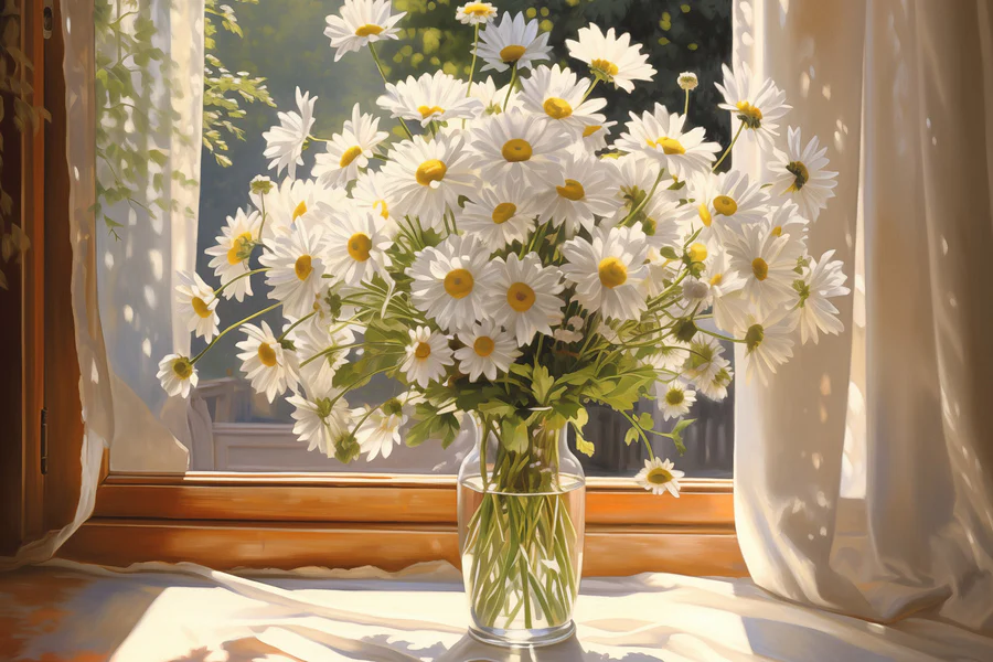 Brighten up your space with the “Bouquet of Daisies in a Glass Vase” canvas print. This cheerful artwork captures the simple joy of fresh flowers, inviting a slice of nature right into your home. Imagine walking into a room and being greeted by the sunny white petals and vibrant yellow centers. It’s like a little burst of happiness that never wilts or needs watering. Perfect for any corner—maybe that empty wall that just needs a talking piece or as a gentle reminder to slow down and enjoy the little things. Plus, who wouldn’t want a bouquet that lasts forever?