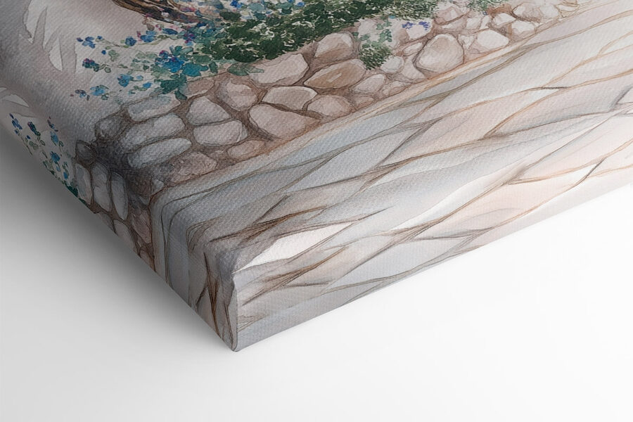 Stap in een wereld die zowel grillig als sereen aanvoelt met deze canvasprint van een charmante deur en boom. Stel je voor dat je thuiskomt en begroet wordt door de zachte blauw- en groentinten die een gevoel van rust oproepen. Het mooie contrast van het levendige gebladerte tegen de zachte, witte muur trekt de aandacht, waardoor het een perfecte gespreksstarter is. Stel je dit voor in een gezellig hoekje of boven een bureau – het is alsof je een stukje natuur in je eigen ruimte hebt. Elke blik biedt een moment van ontsnapping, een kleine herinnering aan de schoonheid die vlak achter de deur bestaat. Perfect voor mensen die de magie van alledaagse dingen waarderen!