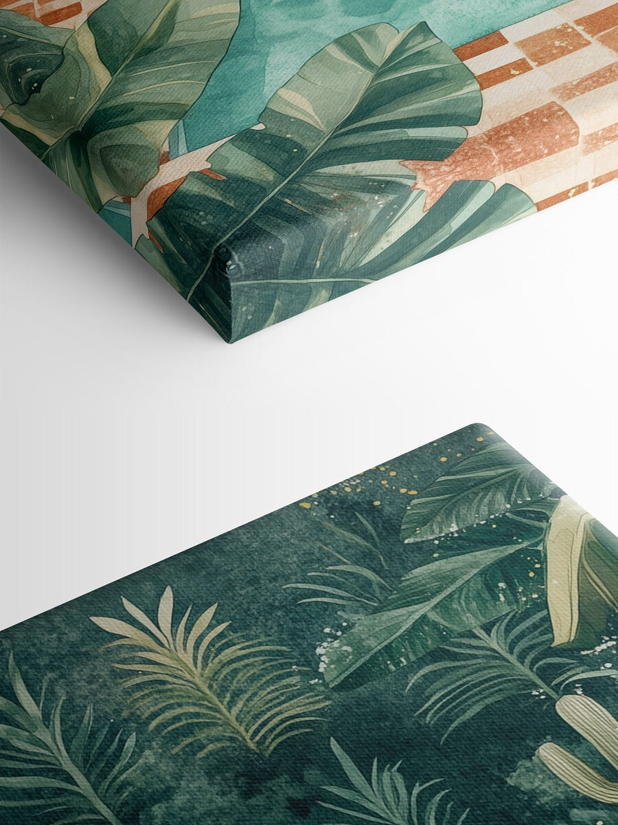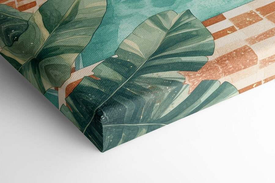Duik in een stukje paradijs met deze levendige canvasprint met een sereen zwembad omringd door uitnodigende ligstoelen en surfplanken die wachten op avontuur. Het weelderige groen voegt dat verfrissende tintje toe, waardoor het perfect is om bij weg te dromen of het volgende stranduitstapje te plannen. Stel je voor: chillen bij het zwembad met een koel drankje, genieten van de zon terwijl de subtiele geluiden van de natuur een sfeer van ontspanning creëren. Dit stuk is niet alleen maar decor; het brengt je naar een zomerse gemoedstoestand, of het nu in de woonkamer is of in dat gezellige leeshoekje. Wie wil die sfeer nou niet?