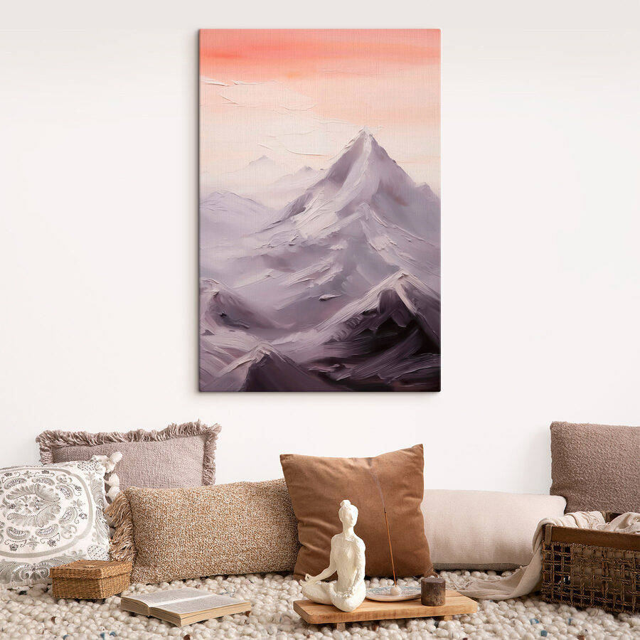 De zachtroze lucht fluistert over rustige ochtenden, terwijl de uitgestrekte bergtoppen uitnodigen tot verwonderde blikken. Stel je eens voor dat je lekker wegkruipt met een warm drankje, geïnspireerd door zoveel natuurlijke schoonheid. Het is de perfecte achtergrond voor luie weekenden of levendige bijeenkomsten en herinnert iedereen eraan om even stil te staan en de eenvoud van het leven te waarderen. Zeker een gespreksstarter en, laten we eerlijk zijn, veel aantrekkelijker dan een lege muur. Maak je klaar om je decor te verbeteren!