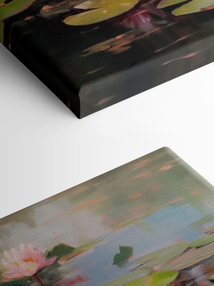 Dompel je onder in een serene ontsnapping met dit betoverende canvas kunstwerk met roze bloemen die delicaat neerstrijken op lelieblad. Het fluistert verhalen van rustige middagen, waar de natuur danst in zachte rimpelingen en het zonlicht door de bladeren flikkert. Stel je voor dat dit stuk je muur siert en meteen een gezellige sfeer creëert – perfect om bij weg te dromen of van een warme kop thee te nippen. Elke blik nodigt uit tot een moment van rust, waardoor het moeilijk is om te weerstaan aan het stelen van een beetje stille tijd, gewoon om te genieten van de schoonheid. Het is alsof je een stukje vredig vijverleven in huis haalt!