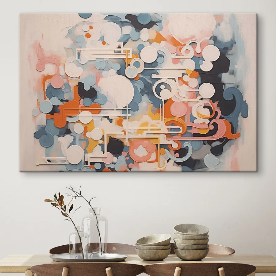 Transformeer je ruimte met een levendige canvasprint die barst van de energie! Dit kleurrijke kunstwerk met speelse witte lijnen en cirkels voelt aan als een vrolijke dans van vormen die erop wacht om je muren op te fleuren. Stel je voor dat je het in een gezellig hoekje hangt, waar het een vonk van creativiteit brengt tijdens rustige ochtenden of levendige bijeenkomsten. Elke blik zou kunnen inspireren tot dagdromen of misschien zelfs tot een klein dansfeest in de woonkamer. Dit kunstwerk is perfect voor liefhebbers van een unieke inrichting en is niet zomaar een print; het is een conversatiestarter en een sfeermaker die elke kamer een beetje meer jou laat voelen.