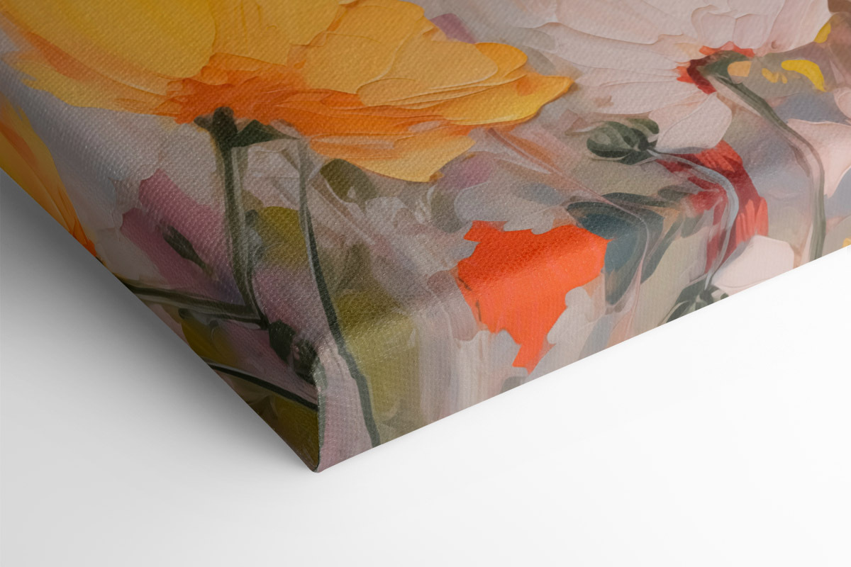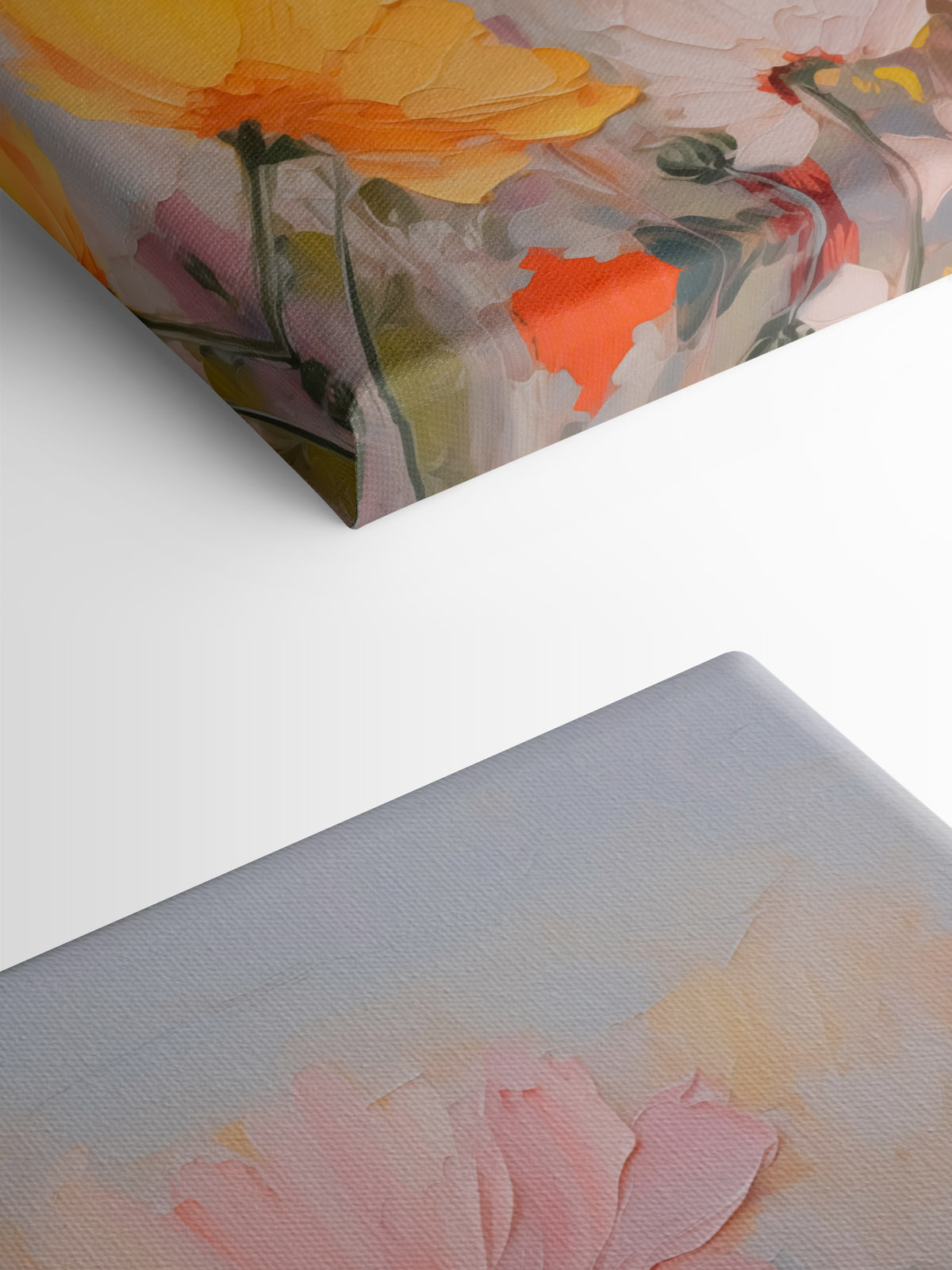 Fleur je kamer op met deze prachtige canvasprint met een uitbarsting van bloemen tegen een rustgevende blauwe achtergrond. Stel je voor dat je op een zonnige dag door een levendige tuin wandelt – dit stuk geeft dat gevoel perfect weer. De speelse kleuren roze en geel dansen samen en creëren een warme sfeer die meteen uitnodigt tot glimlachen. Het is alsof je een stukje natuur in huis haalt, perfect voor een gezellige woonkamer of een vrolijk kantoor. Met zijn charmante persoonlijkheid hangt dit kunstwerk niet alleen aan de muur, maar brengt het leven en vreugde, stimuleert het gesprekken en vrolijkt het iedereen op.