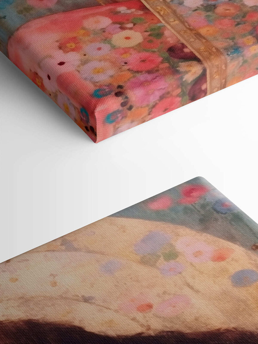 Stel je voor dat je een kamer binnenloopt en begroet wordt door een sereen beeld van een vrouw die vredig slaapt met haar handen gevouwen. Deze betoverende canvasprint legt een moment vast dat zowel intiem als inspirerend aanvoelt. Met delicate bloemenaccenten die om haar heen wervelen, brengt het een vleugje kleur en rust in elke ruimte. Of je hem nu ophangt in een knus leeshoekje of in een uitnodigende woonkamer, hij nodigt uit tot dagdromen en zachte gesprekken. Het is als een zachte knuffel voor de ogen, die verhalen van ontspanning en reflectie fluistert, perfect voor die momenten waarop het leven een beetje hectisch wordt. Precies wat je nodig hebt om een muur op te fleuren en een gevoel van rust op te roepen. Een hoek van je huis kan echt opbloeien met deze schoonheid.