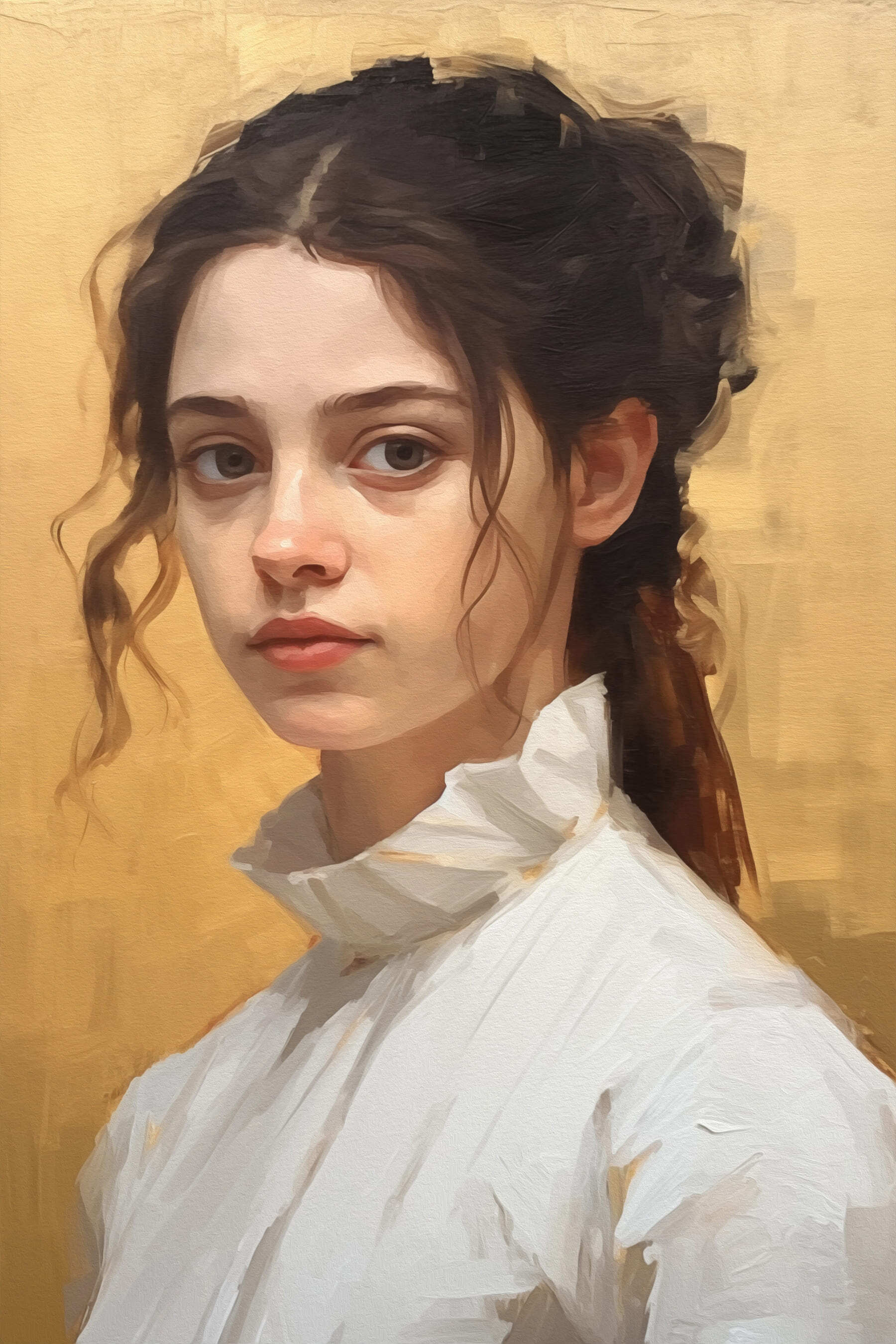 Maak kennis met “Canvas Schilderijen Woman in a White Shirt” – een fascinerend kunstwerk dat aanvoelt als een frisse wind in elke kamer. Met haar zachte blik en moeiteloze stijl brengt dit kunstwerk een vleugje elegantie en rust, perfect voor die momenten waarop je even wilt stoppen en diep adem wilt halen. Stel je voor dat dit in een knus hoekje hangt, waar je je oprolt met een goed boek, of boven een stijlvol bijzettafeltje, om charme toe te voegen aan je inrichting. Het is het soort kunstwerk dat stille gesprekken op gang brengt en iedereen die het ziet uitnodigt om even stil te staan. Dit doek is perfect voor liefhebbers van unieke kunst en brengt warmte en een vleugje introspectieve schoonheid in elke ruimte.