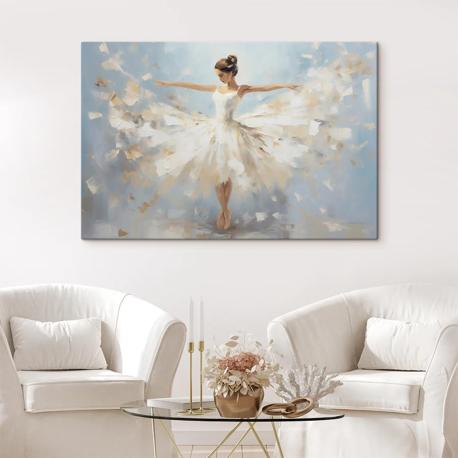 Stel je voor dat je een ruimte binnenstapt die lichter aanvoelt, alsof de lucht is besprenkeld met een beetje magie. Deze canvasprint toont een vrouw in een vloeiende witte jurk, gracieus draaiend alsof ze verdwaald is in een moment van gelukzaligheid. De zachte tinten mengen prachtig en brengen een vleugje sereniteit in elke kamer. Het is het soort kunstwerk dat spreekt als woorden tekortschieten. Hang het boven een gezellige leeshoek of verfraai een galerijmuur – vrienden zullen worden aangetrokken en opeens is het een gespreksstarter! Perfect voor wie houdt van elegantie zonder poespas. Het kan een beetje warmte toevoegen of dagdromen inspireren, waardoor elke blik een zoete ontsnapping wordt.