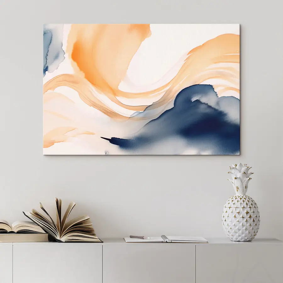 Stel je een golf voor die over je muur danst en kijkers zachtjes in zijn rustgevende omhelzing trekt. Deze canvasprint met prachtige aquarelwervelingen vangt de essentie van beweging, zoals een zacht briesje dat op een warme dag tegen je gezicht strijkt. De rustgevende blauwtinten en aardetinten roepen gedachten op aan ontsnappingen aan het strand en luie middagen. Dit kunstwerk is perfect voor een gezellige woonkamer of een serene slaapkamer en nodigt uit tot dagdromen en vredige momenten. Bedenk eens hoe mooi het zou staan terwijl je thee drinkt of zit te kijken op een regenachtige middag-definitief een gespreksstarter!