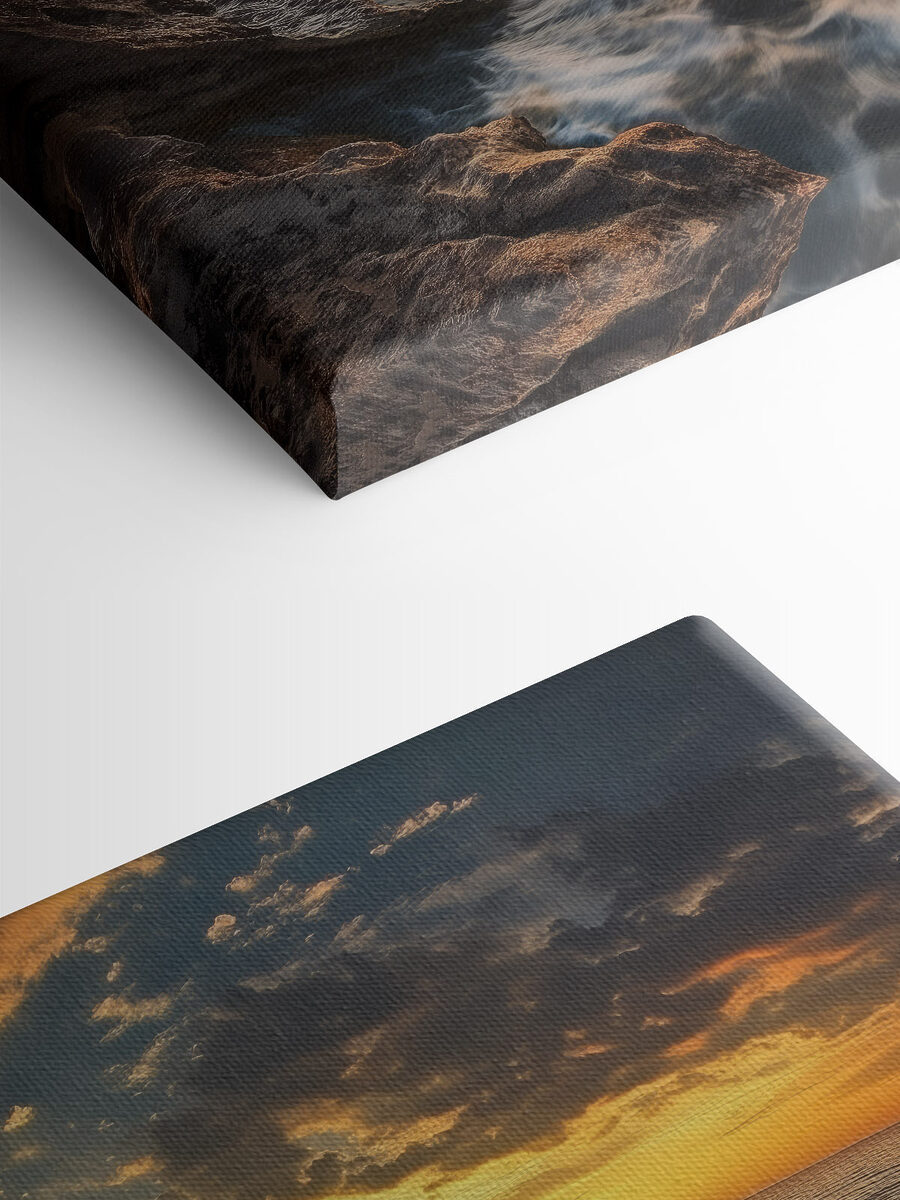 Stel je voor: een prachtige zonsondergang die overgaat in een kalm waterlichaam, golven die zachtjes geheimen fluisteren tegen de kust. Deze canvasprint legt die magische momenten vast waarop de drukte van de dag plaatsmaakt voor serene schoonheid. Stel je voor dat het in een gezellig hoekje hangt en een gevoel van rust en ontspanning geeft. Het is als een constante herinnering om even stil te staan en diep adem te halen, zelfs op de drukste dagen. De rijke kleuren en zachte schaduwen kunnen een kamer transformeren, waardoor die warm en uitnodigend aanvoelt. Het is de manier van de natuur om te zeggen: “Hé, chill out for a sec. Perfect voor strandliefhebbers of iedereen die een vleugje rust in zijn leven nodig heeft. Geen mooie woorden nodig, gewoon pure sfeer.