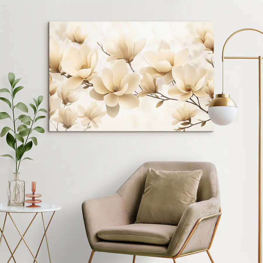 Fleur elke ruimte op met deze prachtige canvasprint met een sierlijke groep witte bloemen. Stel je voor dat je elke ochtend wakker wordt met deze zachte bloemen – hun zachte bloemblaadjes zijn als een warme knuffel voor je muren. Perfect voor een gezellige woonkamer of een rustige slaapkamer, dit stuk brengt de natuur binnen zonder het gedoe van water geven. Vrienden zullen je waarschijnlijk vragen of je ergens een geheime tuin hebt. Met zijn elegante uitstraling past hij moeiteloos in elk interieur. Dus laat je bloemendromen opbloeien in stijl!